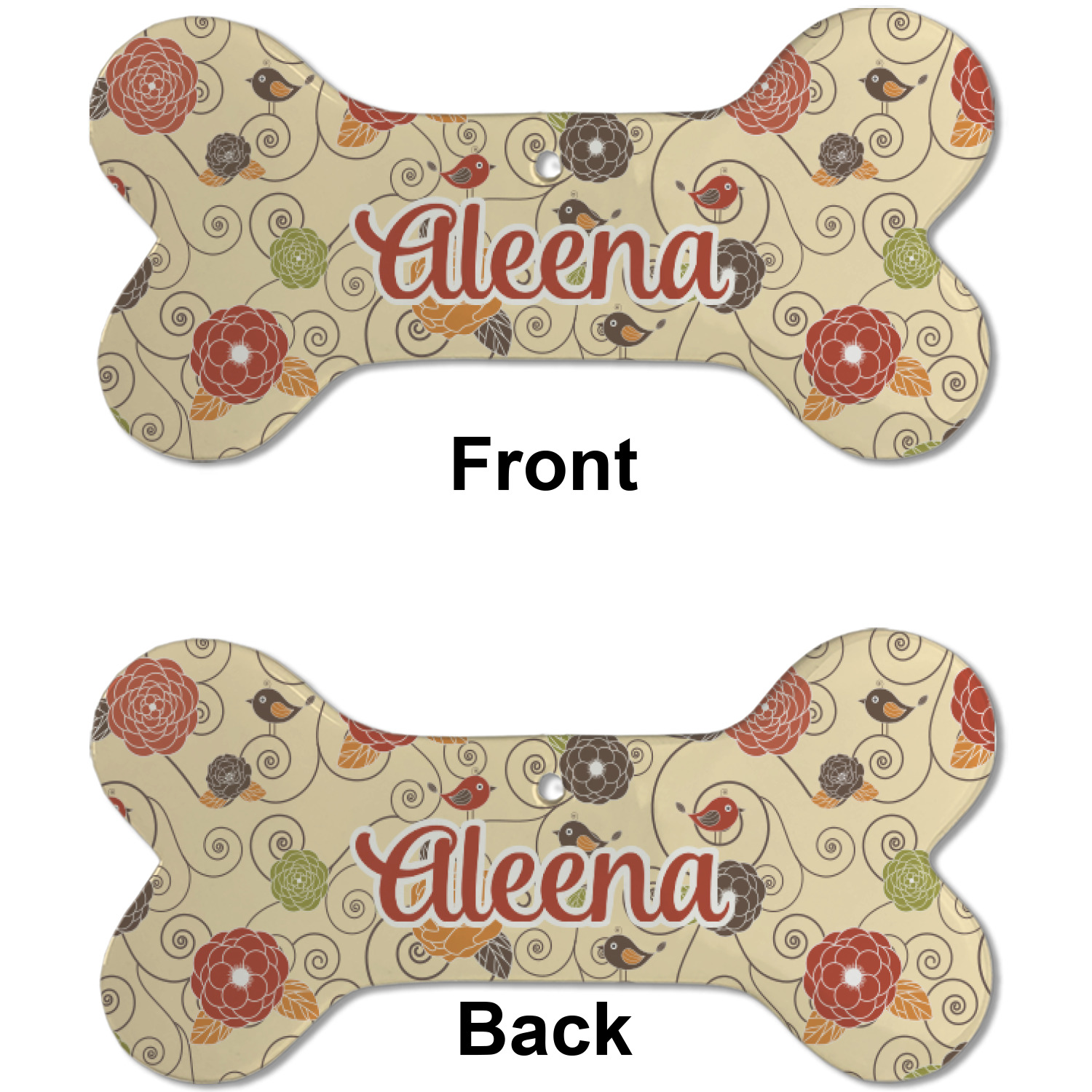 The design has a classic ribbon with a decorative circle frame in a beautiful fall color of orange brown. The personalization is an interlocking monogram, but can just as easily be a name, an initial or any text that you would like.