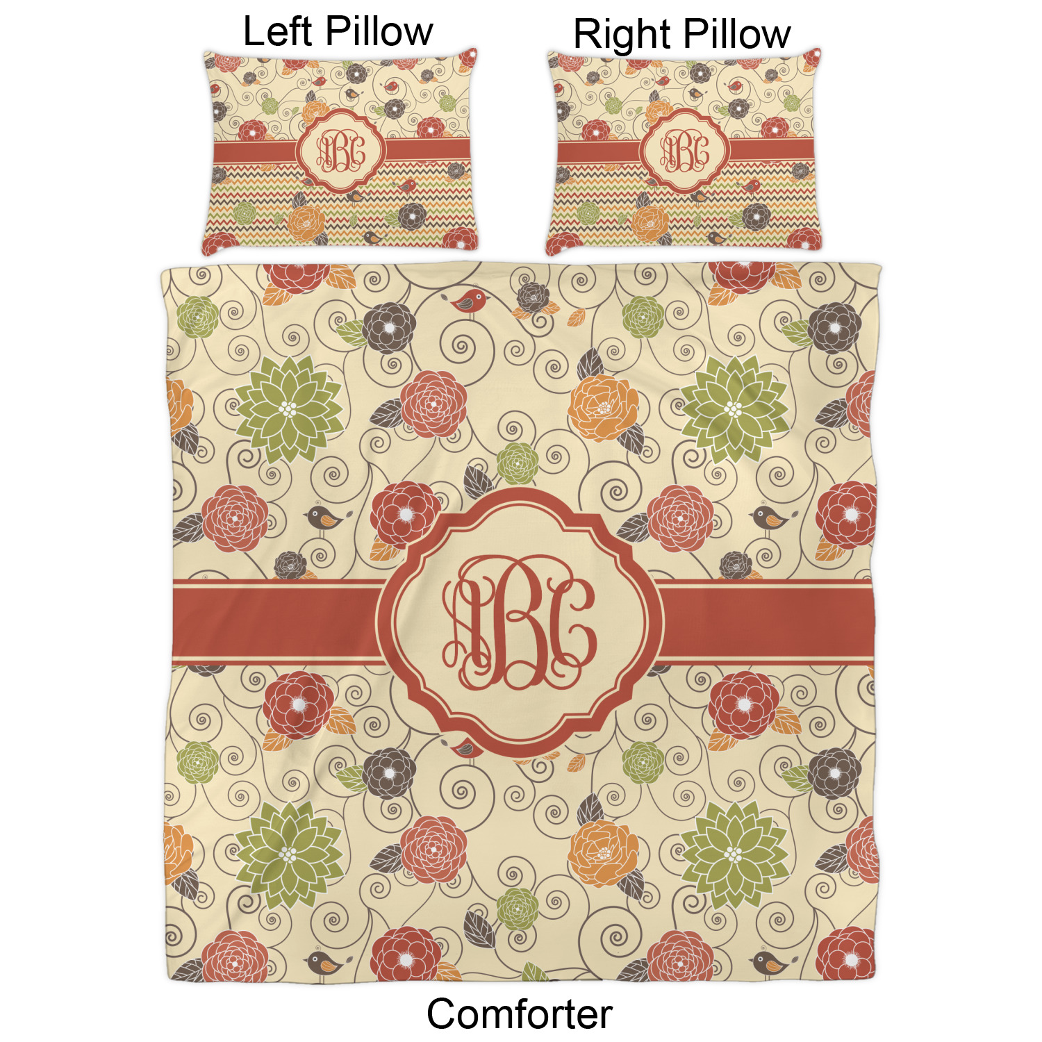 We have hundreds of different design templates for you to choose from Each design can be customized to your exact specifications. Not only can you customize the comforter, but you can also customize each pillow sham e.g. for a queen comforter set you have have Mr & Mrs pillow shams with the last name on comforter.