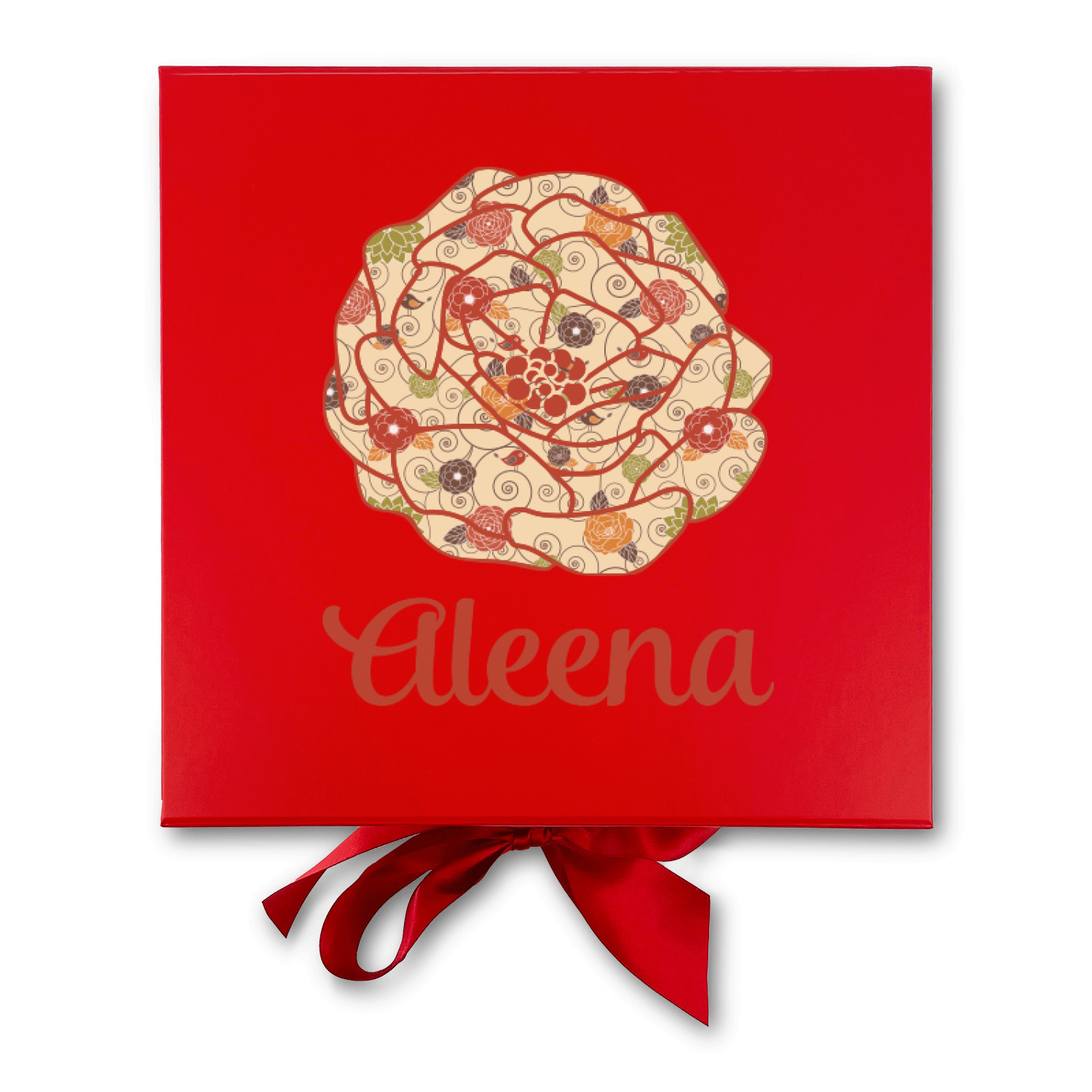 Design your own using our design library and we will print your artwork onto the lid of the gift box. When the box is closed the ribbons can be tied to secure the lid and add to the elegant look of these gift boxes.