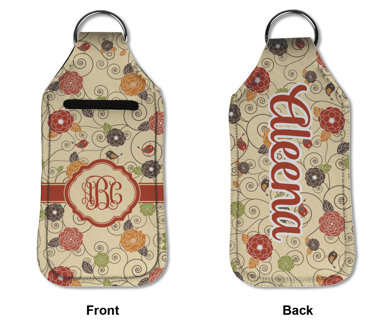 Each hand sanitizer holder comes with its own empty travel-sized, refillable hand sanitizer sure to fit snug in your customized sanitizer case! Our hand sanitizer cases are a durable, yet soft neoprene material sure to last any daily activities or travel agenda. Customize and personalize a hand sanitizer bottle holder with one of our two sizes - small (4.25" x 2.25") or large (5.5" x 2.5"). Each travel sanitizer holder comes with a keyring for attachment on bags, keys, or more!