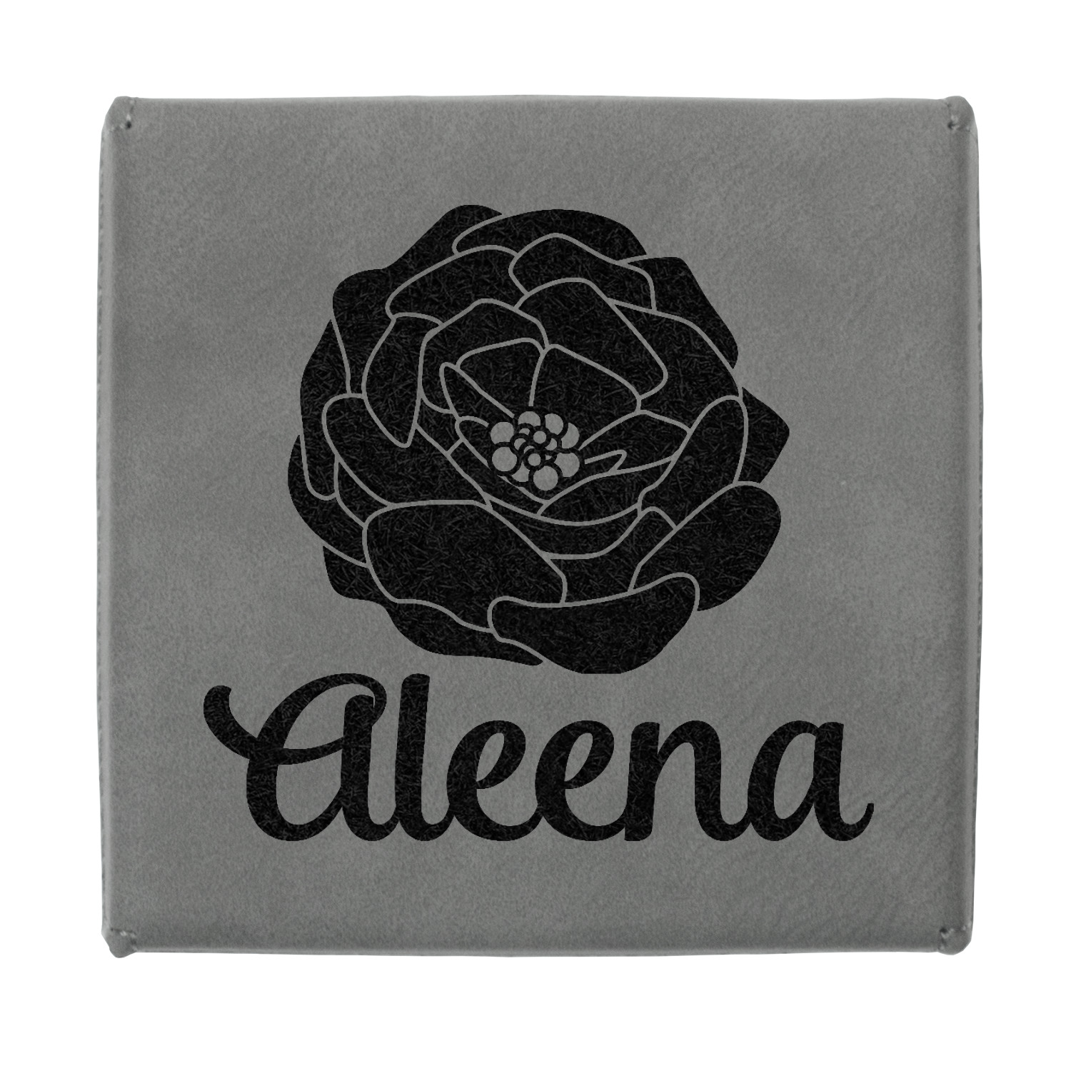 This jewelry gift box measures 3.5 inches long by 3.5 inches wide, and 1 inch deep. The box fits different sized jewelry items such as bracelets, necklaces, watches, earrings, rings and more. Engraved with a laser this high quality paper board and faux leather jewelry gift box is unique and makes any gift stand out.
