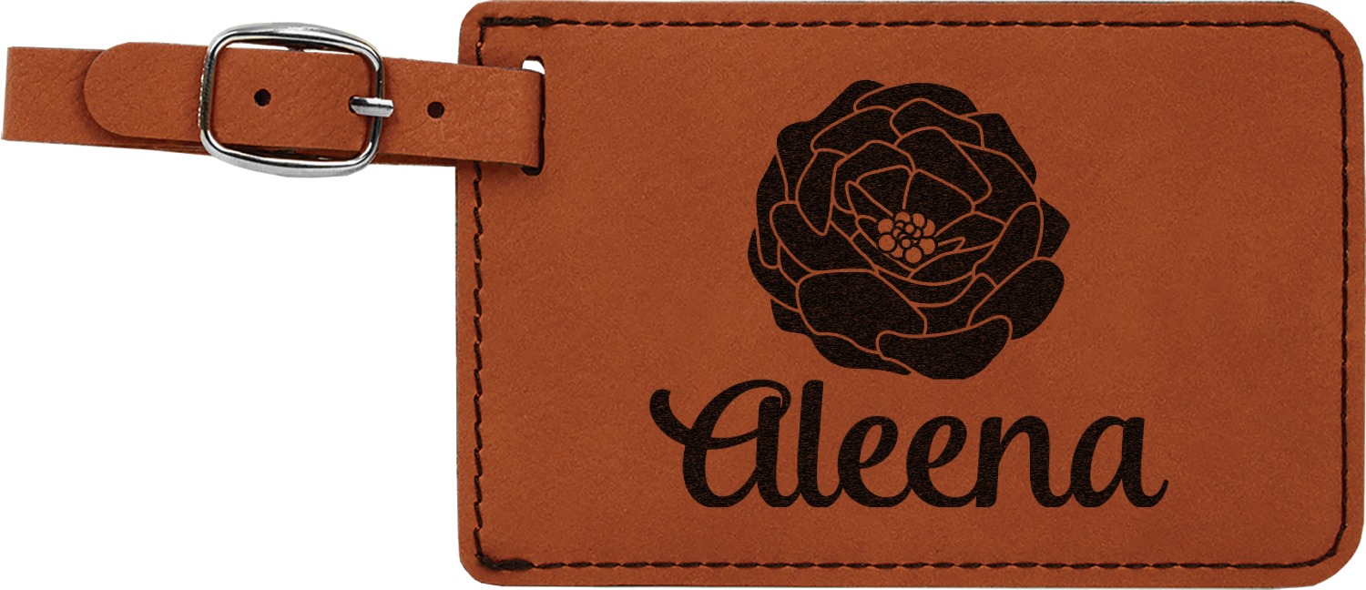 This luggage tag will surely be able to get you started in having all the right tools for traveling. It is made of a beautiful leatherette material that is a nice shade of cognac brown. The front of the tag is where your design goes. The sturdy black stitching gives your design an extra pop and gives the tag extra durability. The back of the tag has a clear vinyl window where you can slip in your address card. The tag comes with a great little buckle strap that you can easily use to clip to your suitcase. The tag itself measures at approximately 5.5"W x 4.25"H.