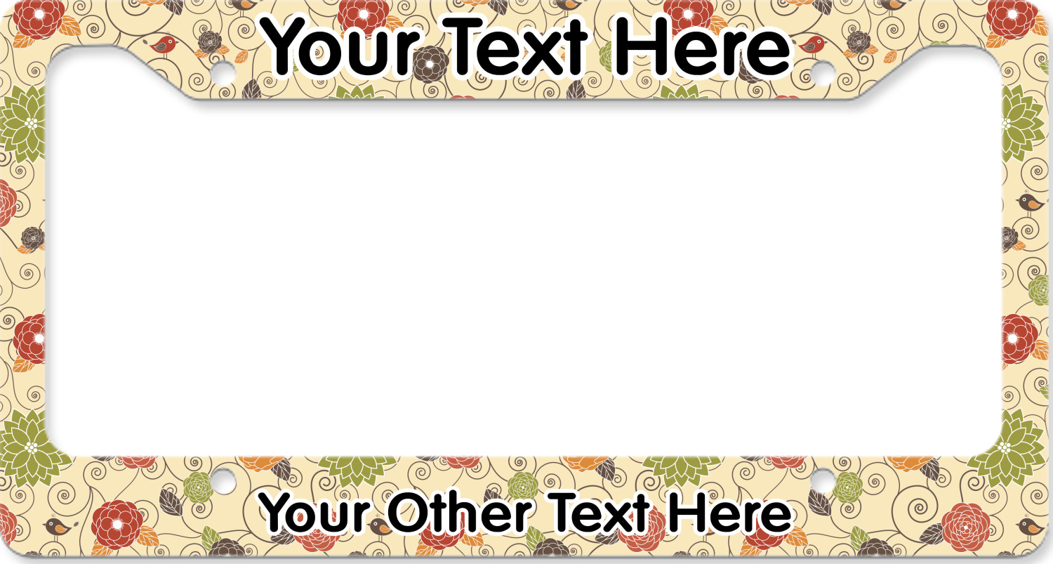 Each customizable license plate frame is made from a fine, yet sturdy aluminum material that measures approximately 6.5 x 12.15 inches, accommodating most standard license plates. The thickness allows the license plate frame to adhere completely to your license plate for a seamless look. We carry 3 styles of license plate frames to customize - Style A has texts on top and bottom, Style B offers texts on top and bottom as well as a full fill bottom border, and Style C offers text at the bottom only. The personalized license plate frame comes with four mounting holes for easy installation! We print each custom design across the frame with a glossy finish.