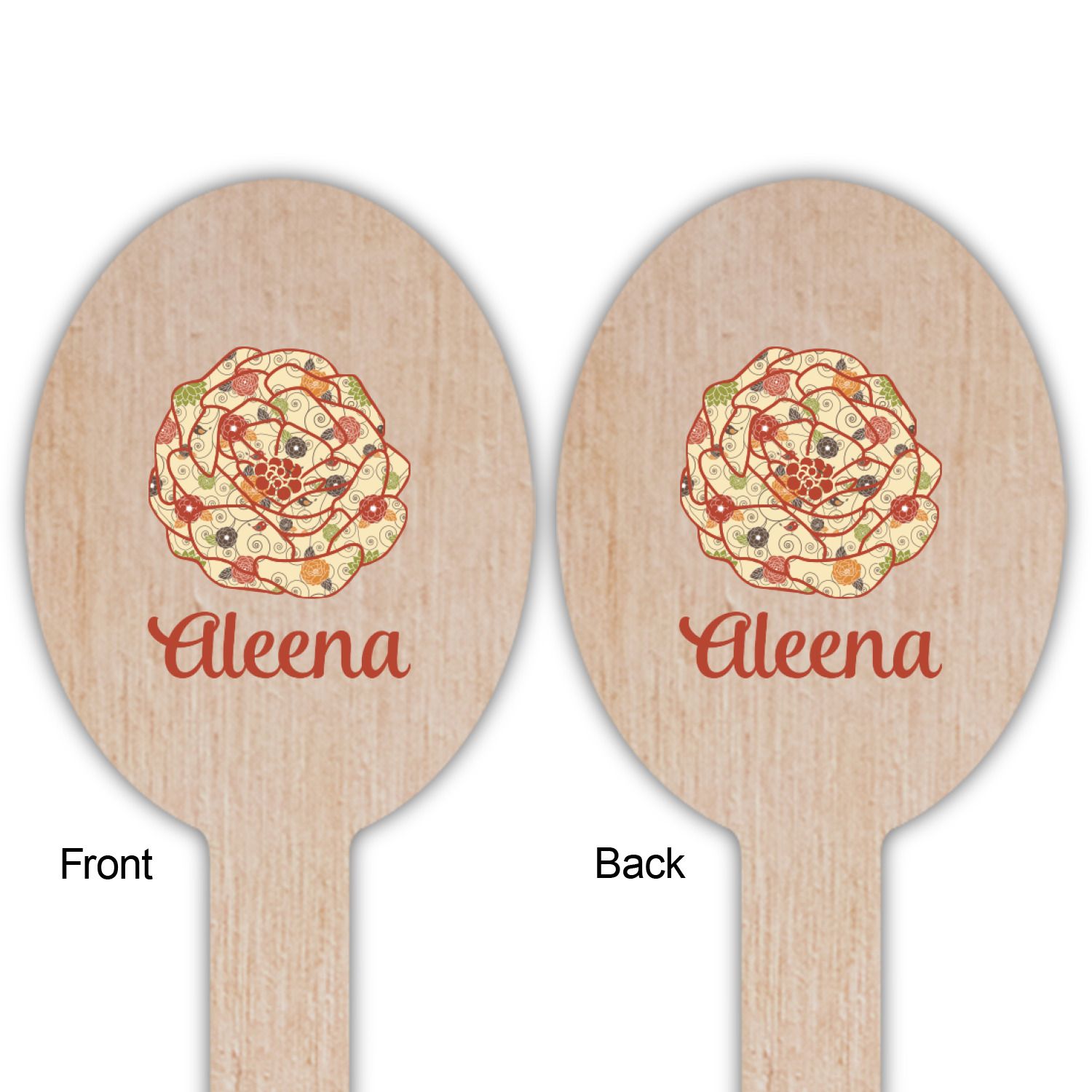The design has a classic ribbon with a decorative circle frame in a beautiful fall color of orange brown. The personalization is an interlocking monogram, but can just as easily be a name, an initial or any text that you would like.