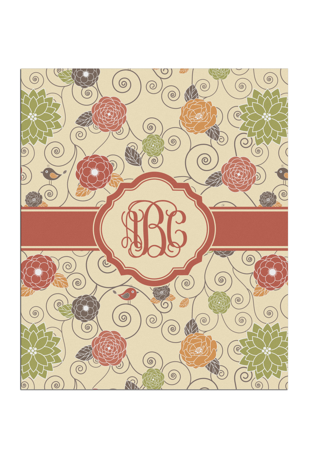 Autumn is in the air. You can feel the cool fall breeze when you see the sweet little song bird hidden amidst the fall foliage of red, orange, brown and green on a tan background. This fall flower design has chrysanthemums, asters, roses and beautiful set amongst swirls and curls.