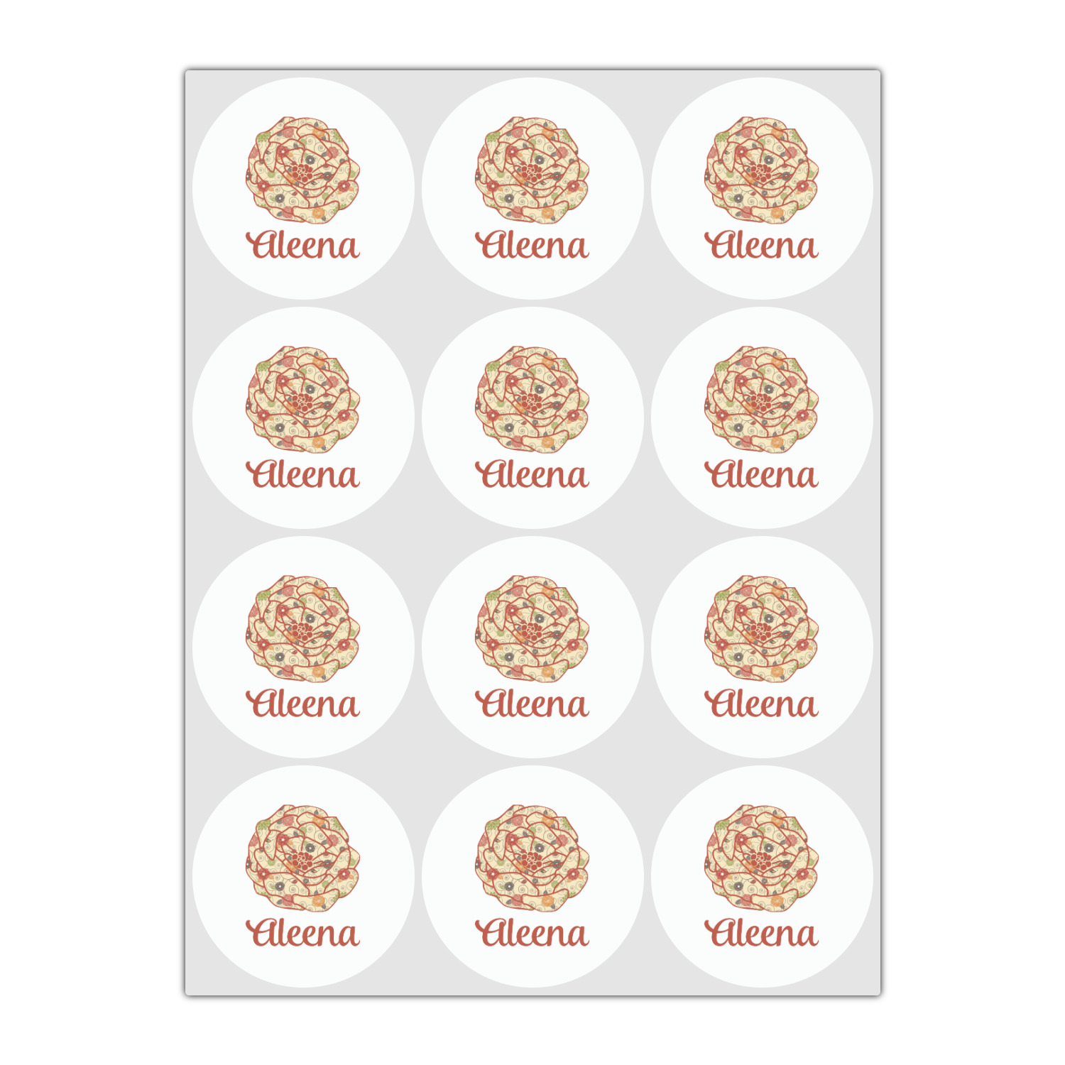 The design has a classic ribbon with a decorative circle frame in a beautiful fall color of orange brown. The personalization is an interlocking monogram, but can just as easily be a name, an initial or any text that you would like.