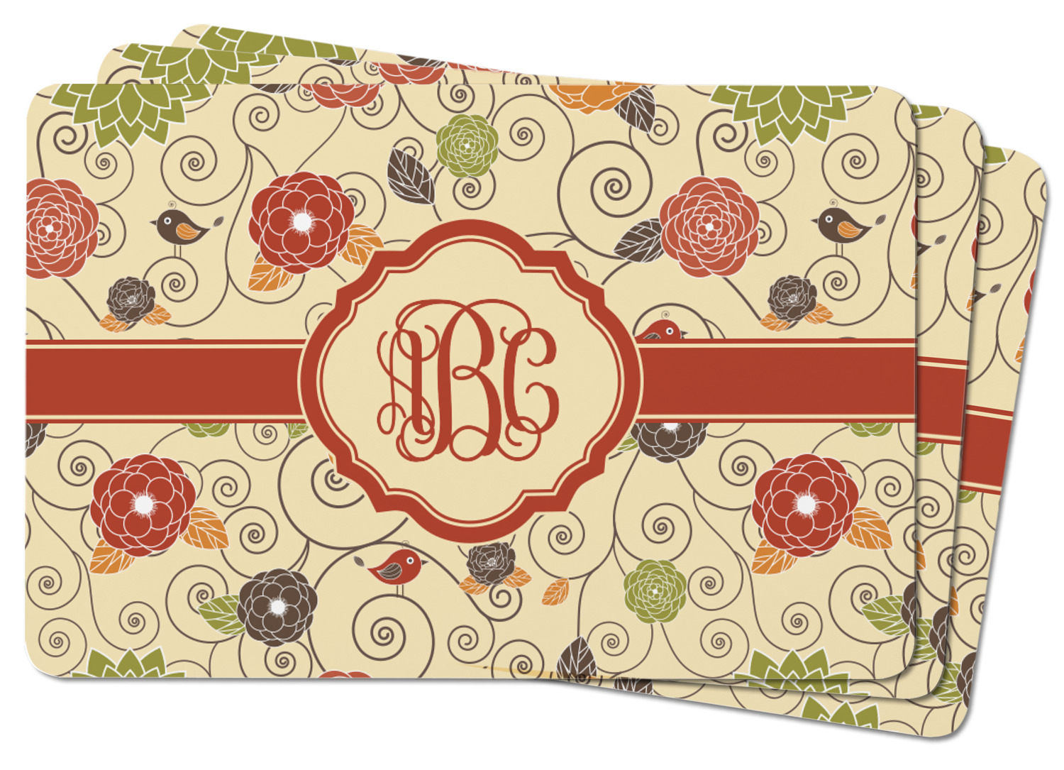 The design has a classic ribbon with a decorative circle frame in a beautiful fall color of orange brown. The personalization is an interlocking monogram, but can just as easily be a name, an initial or any text that you would like.