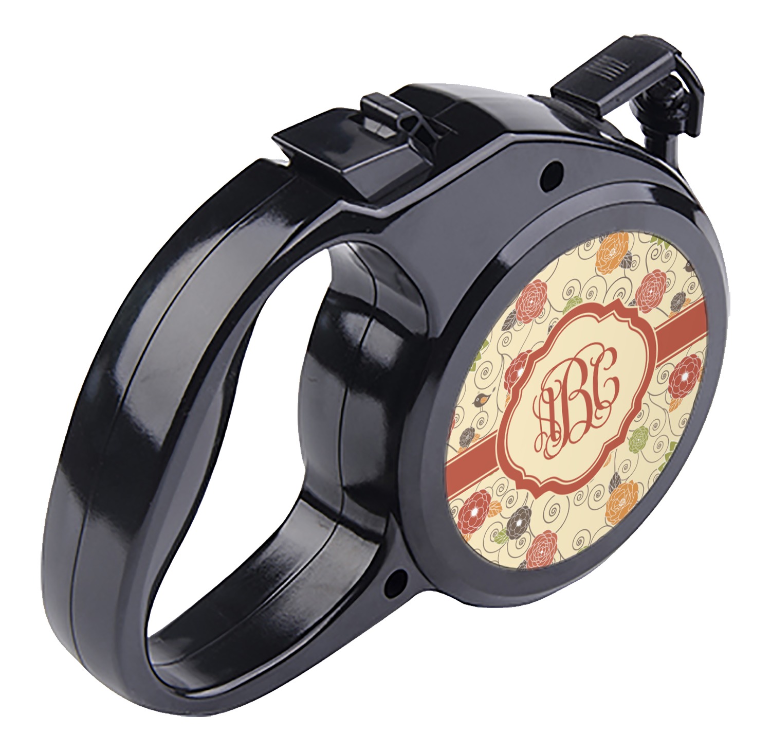 The leash's plastic handle is accommodating of your grip and displays your customization on both sides. The dog leash also features the traditional bolt snap clip, for easy fastening to your dog's collar. The leash and leash handle themselves are both black in color.