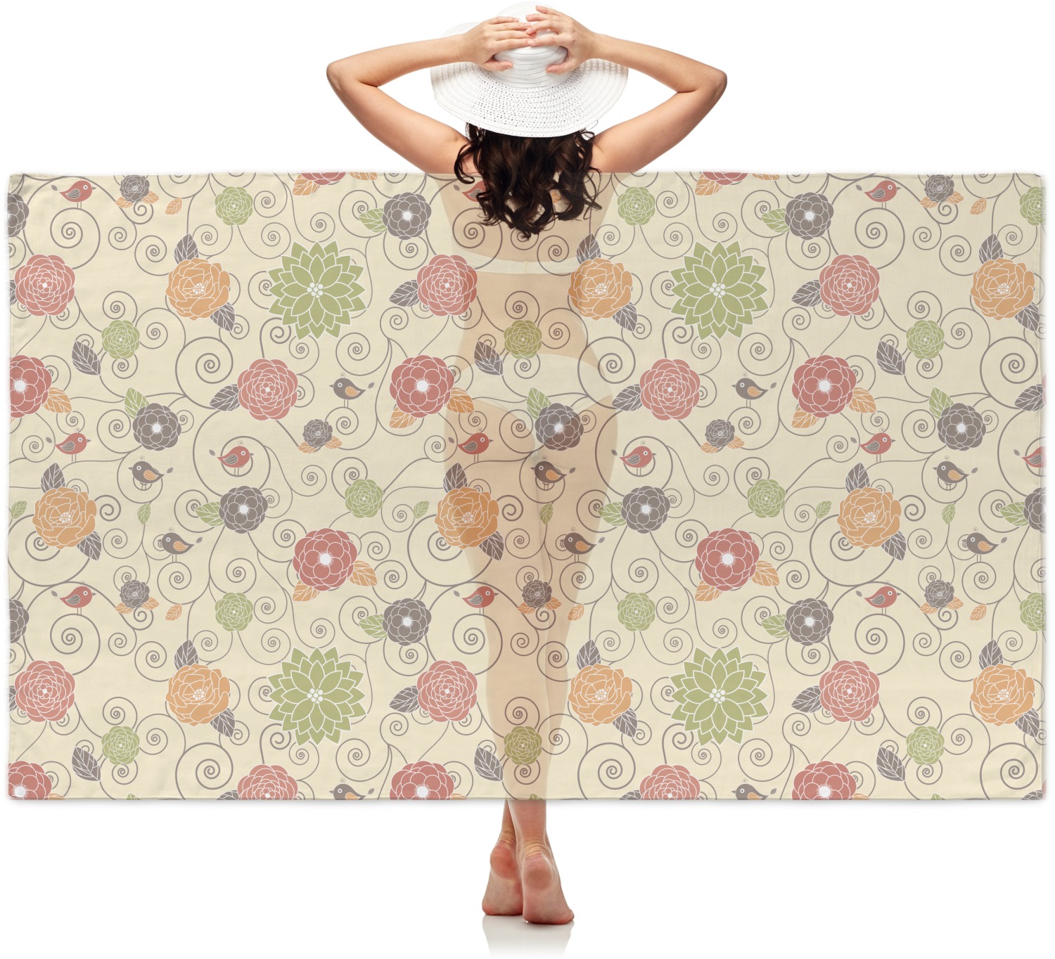 This sarong is 42" x 70" of personalized beauty. It is made of a soft polyester for comfort when against your skin. The material is sheer, so it serves well as a swimsuit cover-up or a shawl. There are so many uses for this wonderful product that you will be sure to find when it is in your hands.