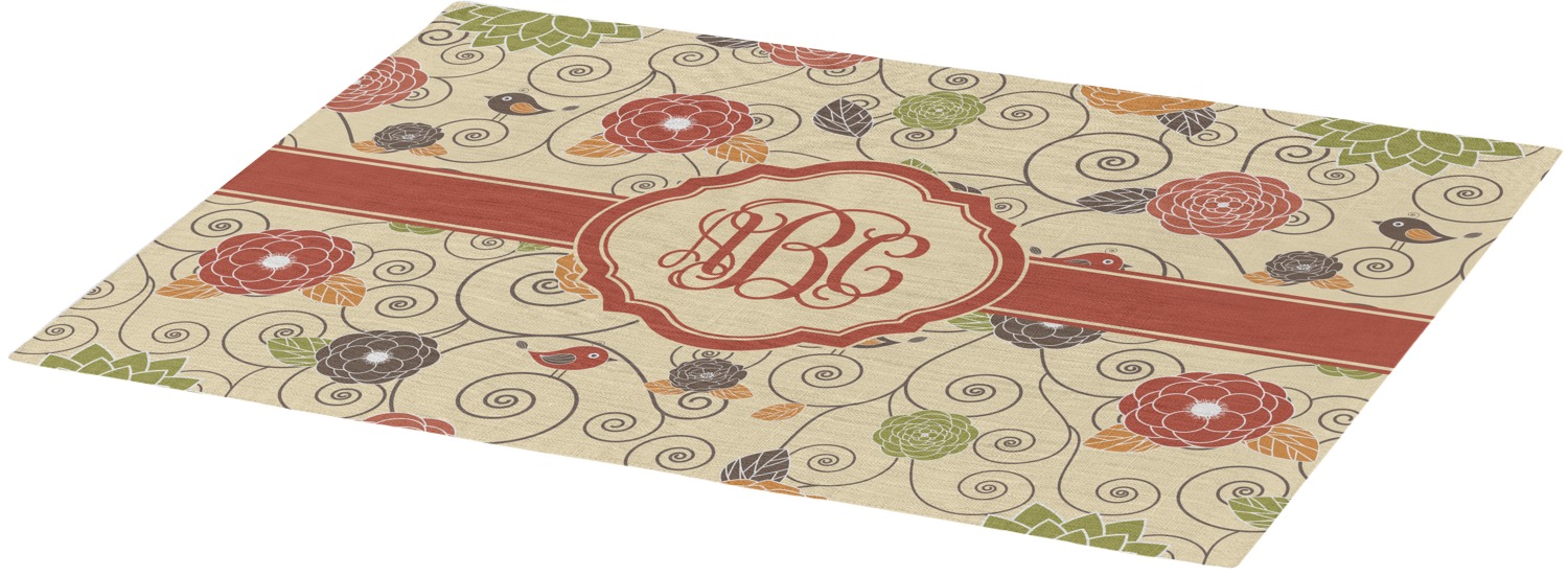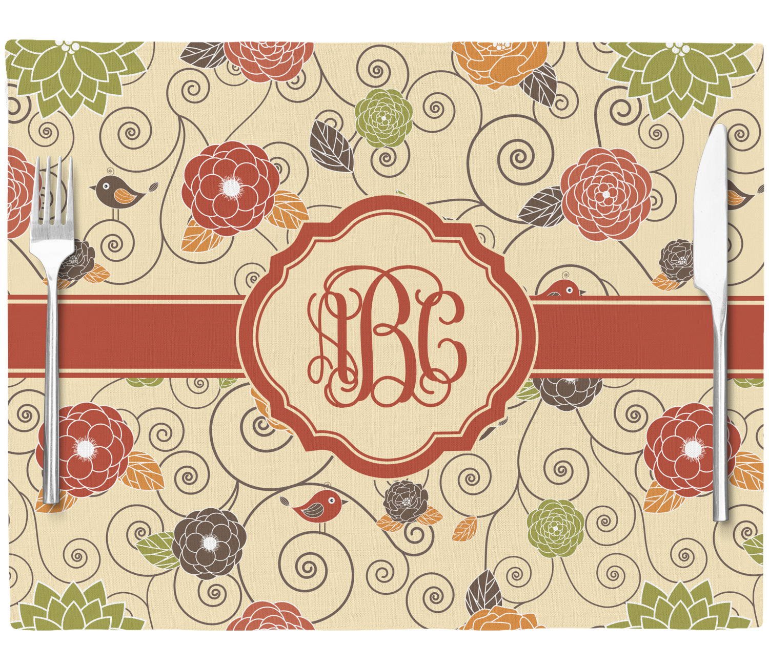 Each of our table mats are a poly twill material with woven burlap detailing. This creates a soft, quality placemat for us to fully print your personalized design across. The woven twill also adds a wrinkle-free surface to set your table! Each customizable placemat is a rectangle shape measuring at approximately 13 x 18 and printed here in the USA.