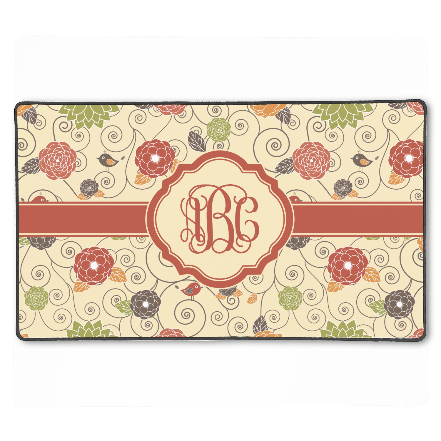 The design has a classic ribbon with a decorative circle frame in a beautiful fall color of orange brown. The personalization is an interlocking monogram, but can just as easily be a name, an initial or any text that you would like.