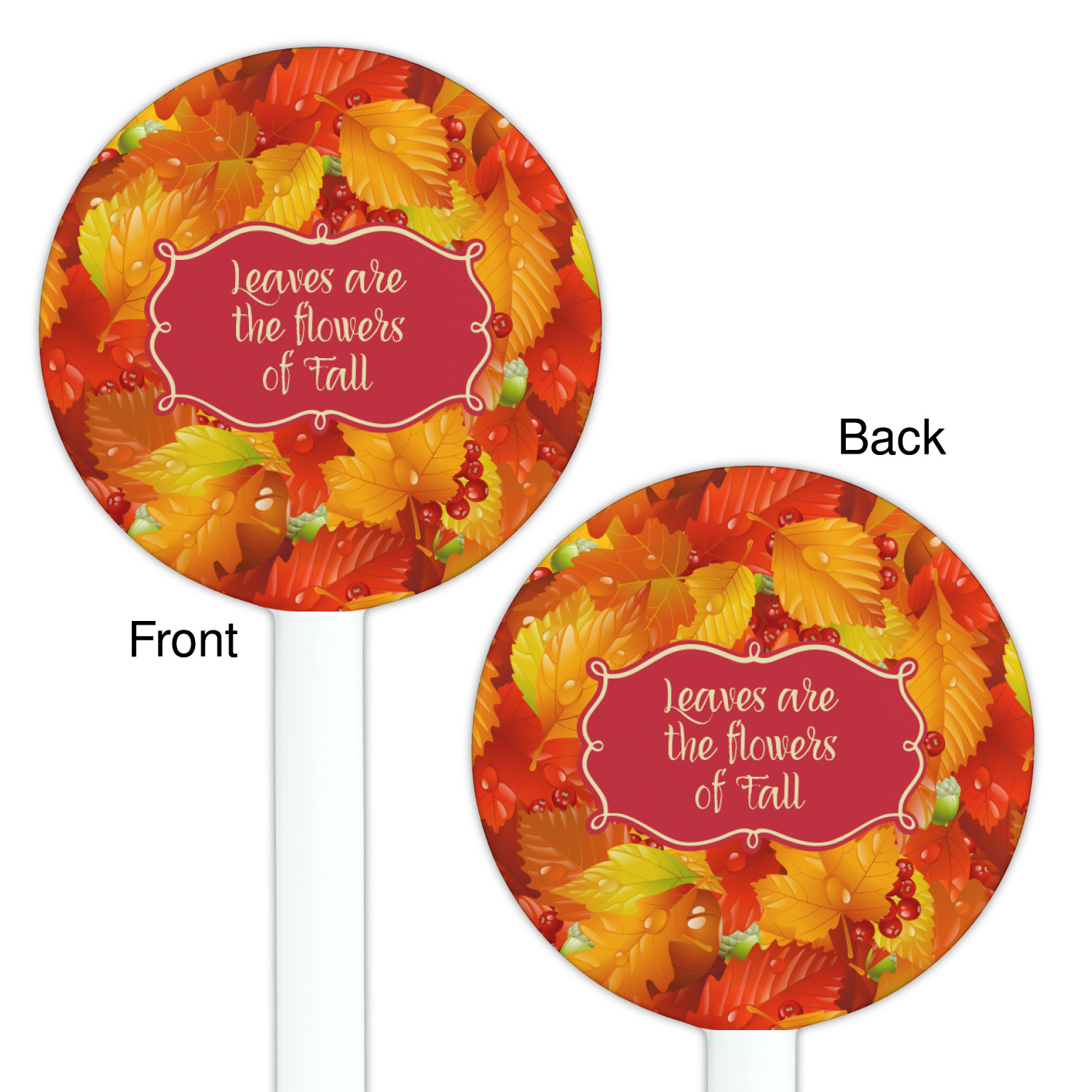Acorns Designs for 5.5" Round Plastic Stir Sticks - White - Double-Sided