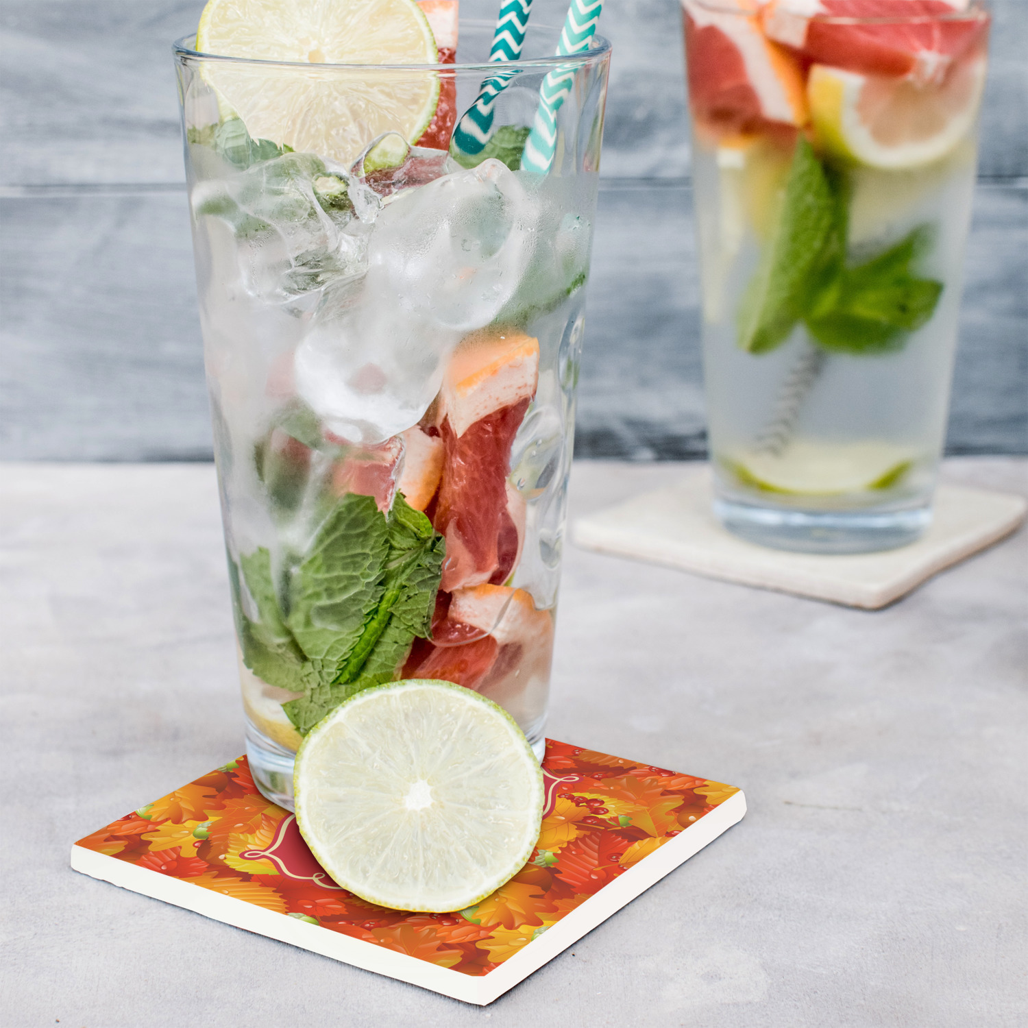 These customized stone coasters are perfect for use with beverages that are served in drinkware that "sweat". When cocktails, sodas, iced tea, water, etc. are served with ice in a regular glasses (non insulated glasses), they release condensation that drips down the outside of the glasses.