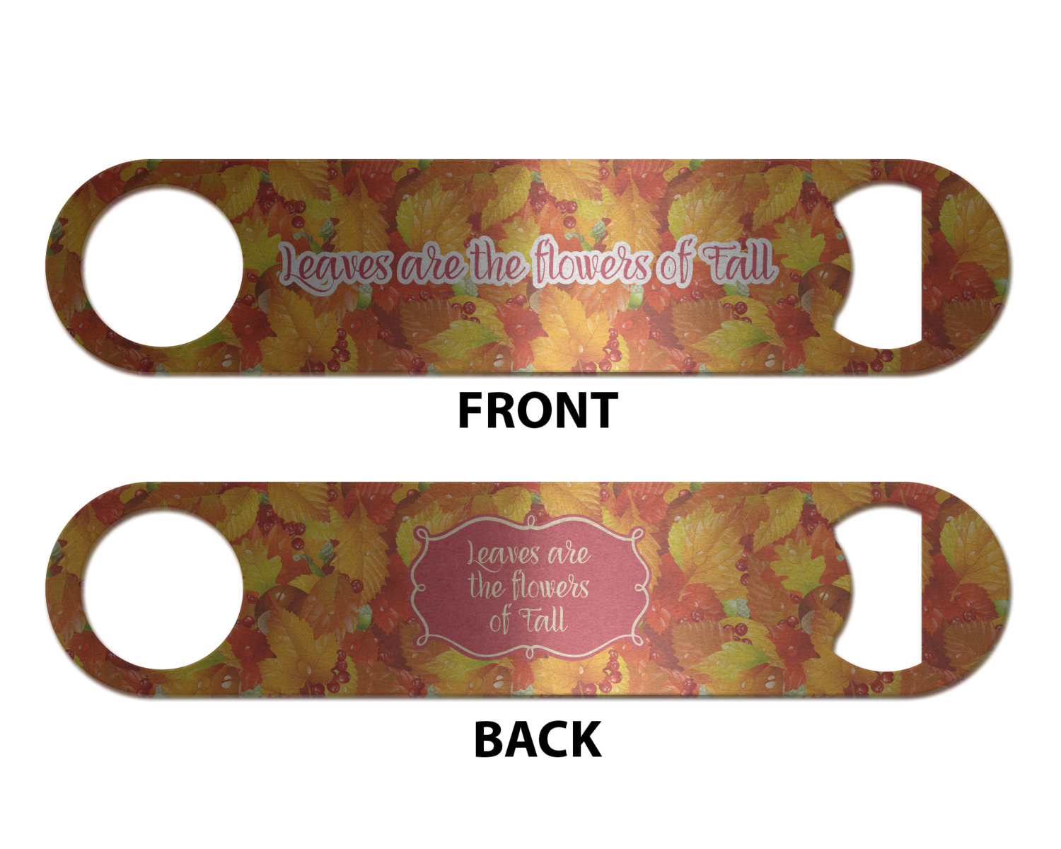 Made from stainless steel, these beer bottle openers are 7 by 1.625 inches, giving you plenty of leverage when trying to open a stubborn bottle. On one end of this personalized bottle opener, you'll find a circular hole for you to hang and display your opener. On the opposite end, you'll find the tool used for opening bottles. This opener in particular has the same structure and style as professional bartender bottle openers. Your customization is sublimated onto both the back and front, and both sides can be customized individually. Choose from one of our two base colors - white or silver.