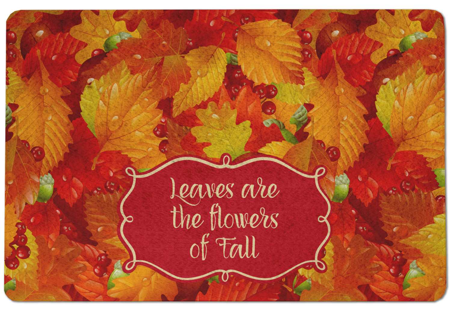 This design of fall leaves is absolutely stunning; the colors are incredible. We love that there are fall berries and acorns mixed in with the leaves. The dew water droplets on the leaves look so realistic. You can imagine and hear the crunch of the leaves as you walk on them.