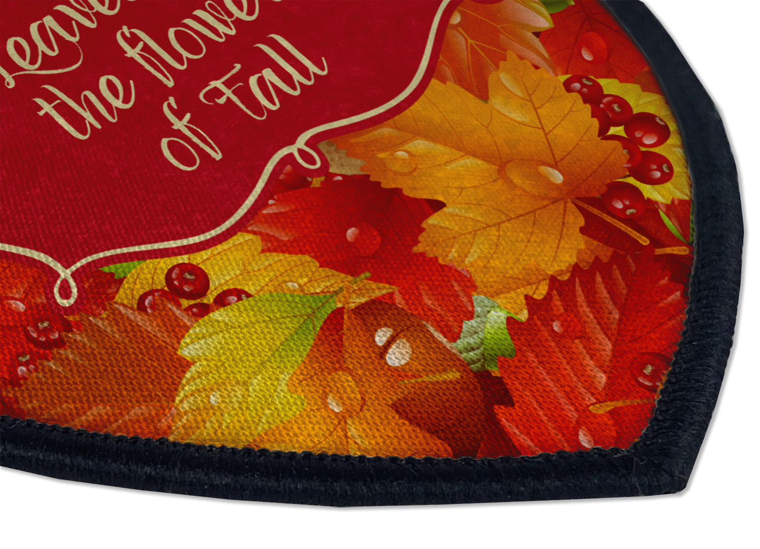 This design of fall leaves is absolutely stunning; the colors are incredible. We love that there are fall berries and acorns mixed in with the leaves. The dew water droplets on the leaves look so realistic. You can imagine and hear the crunch of the leaves as you walk on them.
