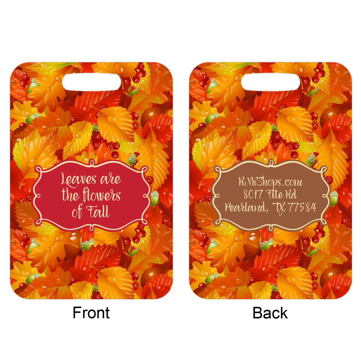 These metal luggage tags are printed on both sides; the front is printed with the design of your choice - and can be personalized with your name, name & initial or your monogram. The back can have as much or as little of your contact information as you desire - your name, your address, city, zip & state, you can also include your phone number and email address. Customize it exactly the way you want it!