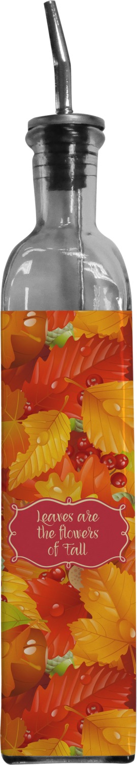 Made from recycled glass in Spain, these oil bottles have a classic, delicate look, and are accompanied by a metal spout for controlled pouring. Each bottle holds approximately 13 ounces and measures at 12 by 2 inches. We customize your glass oil bottle by applying your personalized design on the front and sides, using an adhesive. Our customizable stickers are made from high quality, gloss vinyl and are printed with waterproof, eco-solvent inks. These pieces are machine cut for accuracy and symmetry. The result is a robust, waterproof, adhesive decal that will not fade or deteriorate with time.