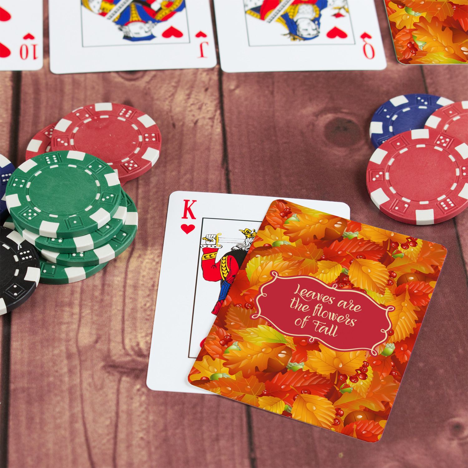 Our playing cards are perfect for family game nights or poker nights. A deck of customized playing cards ups the level of fun & entertainment to your game or poker nights. Imagine playing cards customized to match the theme of your game room, or game night, or that special event, or occasion with gambling tables!