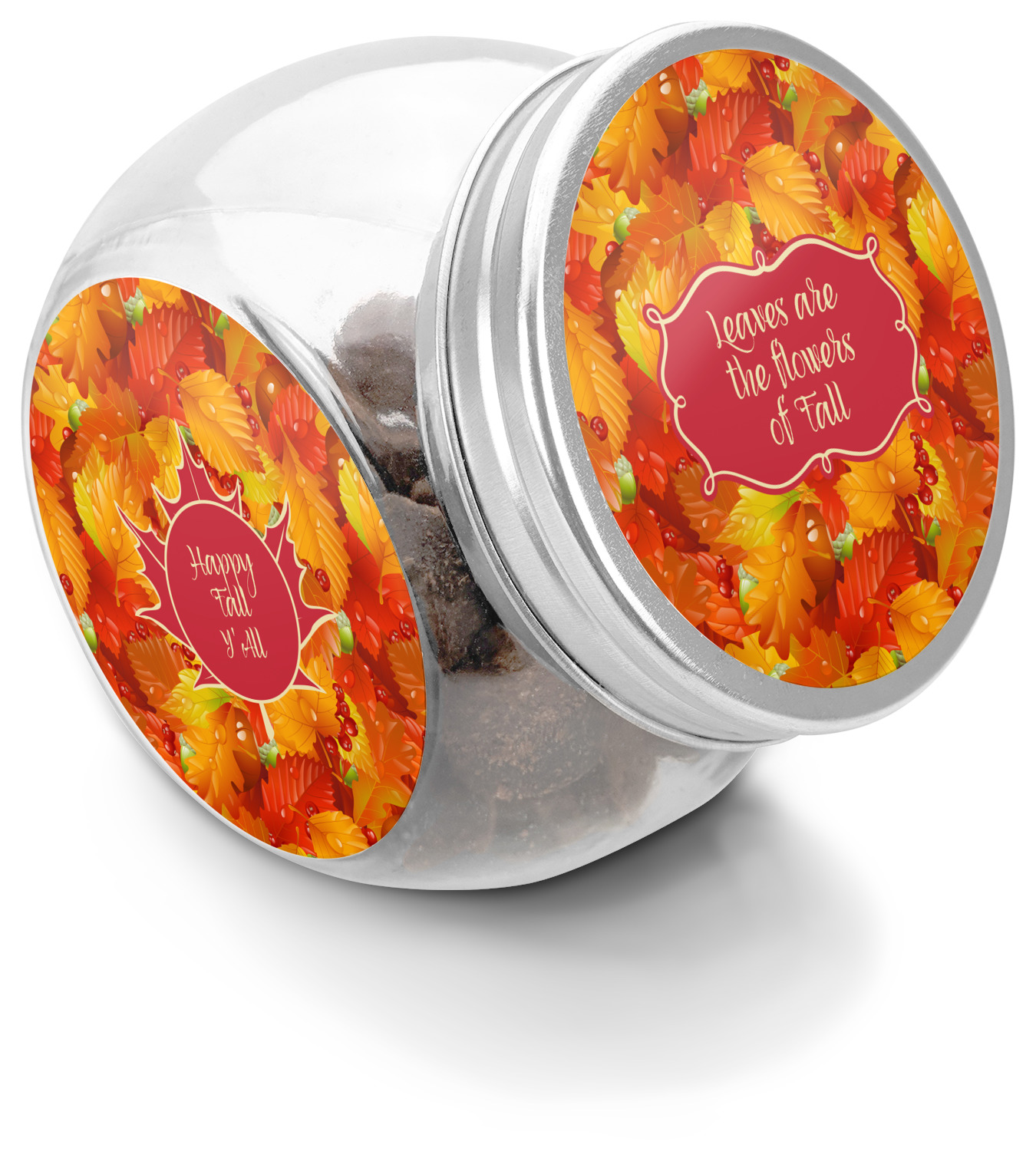This treat jar is an excellent way to store treats for your favorite canine or feline. Moreover, their delicate, classy appearance makes them a tasteful addition to your countertop's décor. Crafted from clear glass, its unique construction and silver metal, screw-on lid allows for quick and easy access. Three, permanent, vinyl stickers are applied to both sides of the jar and lid, presenting your personalized design. The base of this glass, dog treat jar is 3.4" x 4.75", and the jar stands at 5" tall. Though on the smaller side, this jar is best suited for smaller treats or training treats.