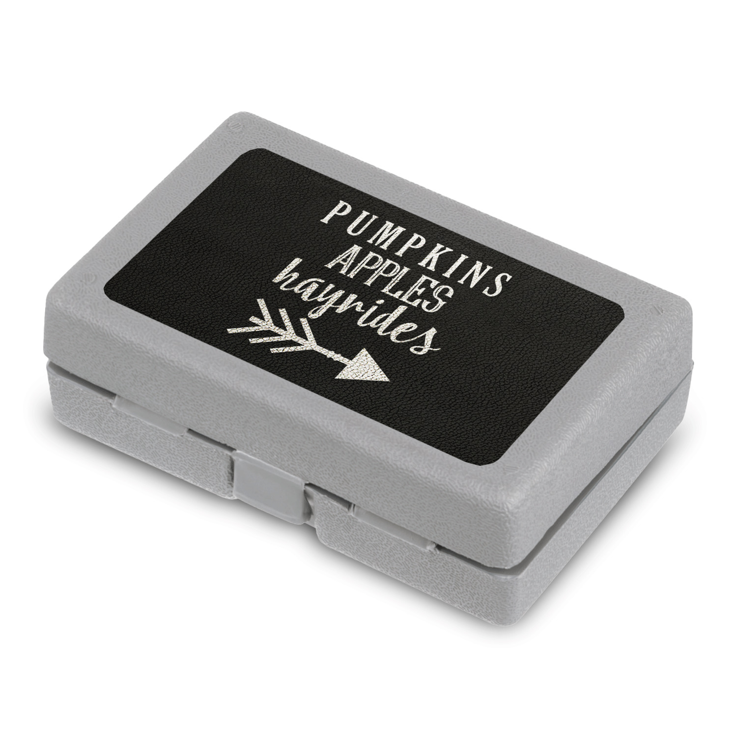 In a tri-fold hard shell case which measures 6" wide, 4" deep and 2" tall, this kit is the perfect size to keep in a desk, garage drawer, or anywhere else in the house. The snap closure keeps it securely closed to ensure the tools do not fall out. With the black faux leather on the outside engraved with your choice of personalization it will be easier to ensure it stays yours by being customized just for you!