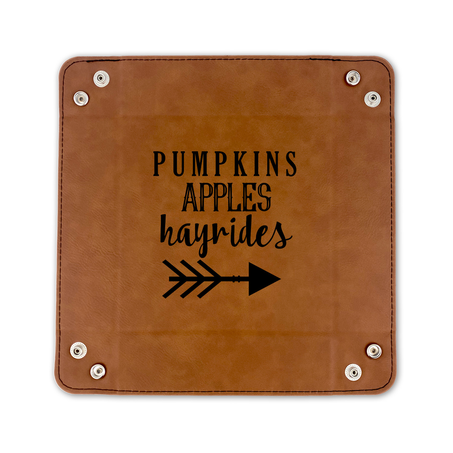 The leatherette wraps the hard board base and sides with flexible hinges to fold the sides up. The corners are secured using silver snaps. The 6in x 6 in tray measures approximately 9.5in x 9.5in when laid flat. The 9in x 9in tray measures approximately 13in x 13in when laid flat.