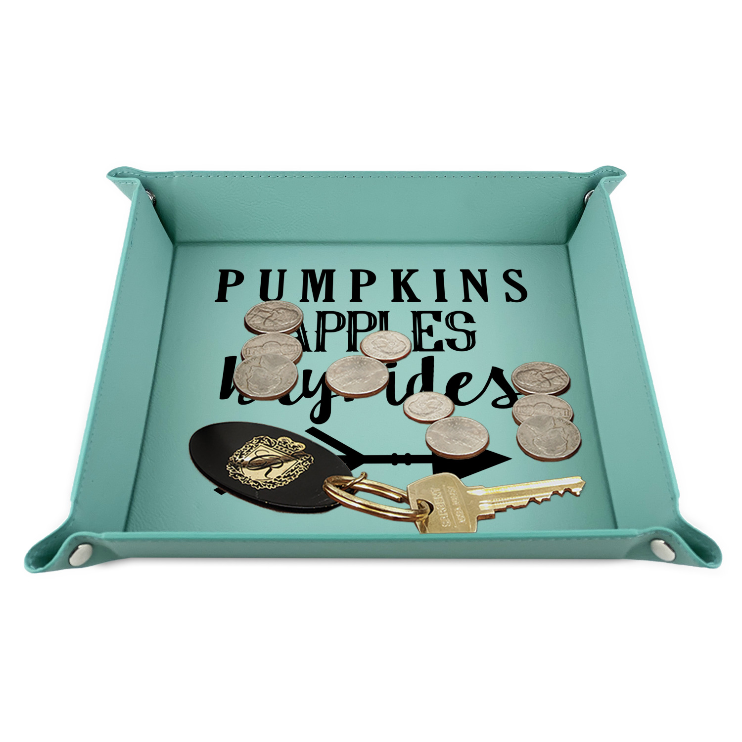 The leatherette wraps the hard board base and sides with flexible hinges to fold the sides up. The corners are secured using silver snaps. The 6in x 6 in tray measures approximately 9.5in x 9.5in when laid flat. The 9in x 9in tray measures approximately 13in x 13in when laid flat.