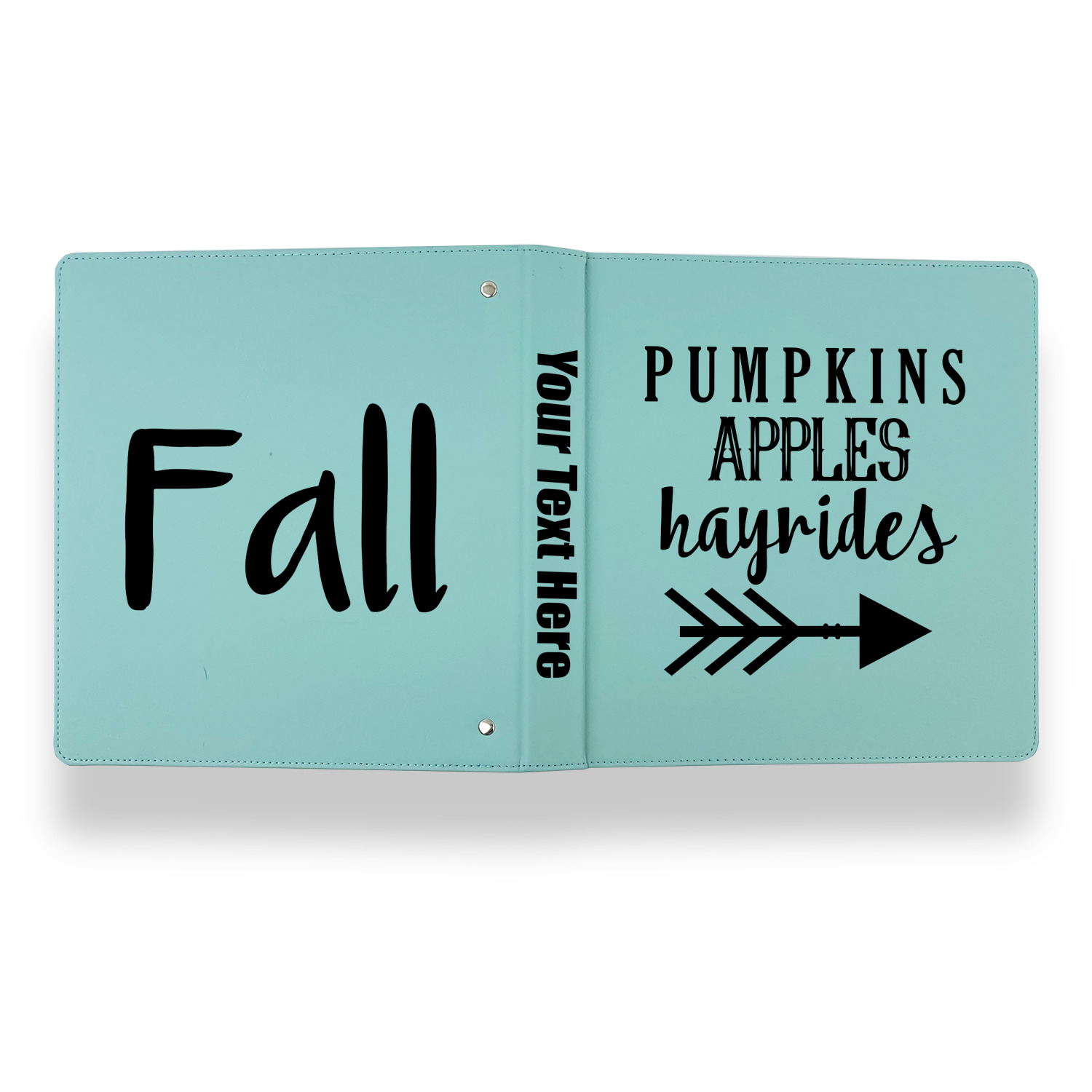 Made from a high quality faux leather covering, these binders are laser engrave with your choice of personalization. The 1" d-rings inside hold up to 175 sheets of standard 8.5" x 11" US Letter or notebook paper or 8.27" x 11.69" A4 size paper.