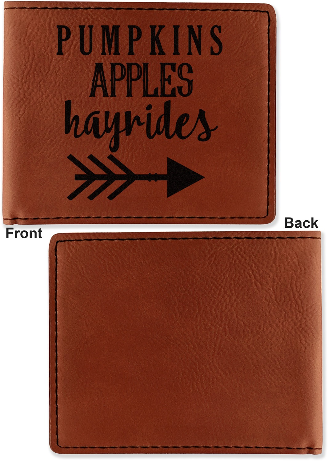 Your bifold wallet will be personalized by laser engraving, which will be a black color on the wallet. Choose a graphic, text, or monogram to personalize your wallet. There are thousands of choices in our design center.