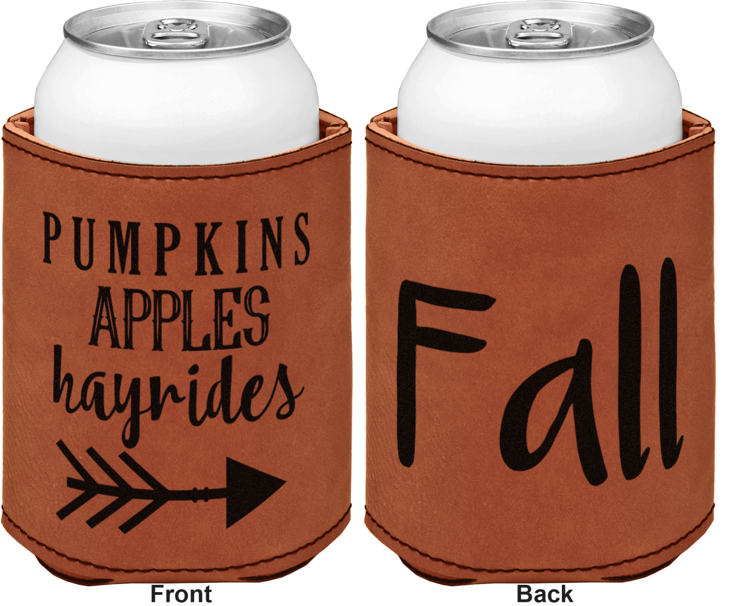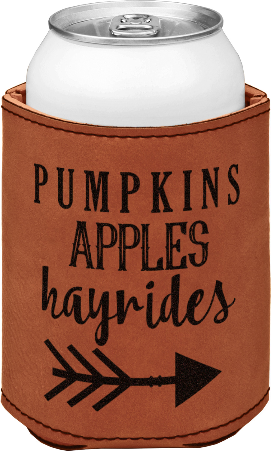 This can sleeve is made from a cognac-brown leatherette and stitched with a sturdy, black thread. A slim padding lines the inside of your can sleeve to allow for a better fit once your drink is inserted. The sleeve itself measures at 4 by 4.5 inches, allowing this custom can sleeve to accommodate most canned drinks. Your personalized design can be engraved on the front and back, or solely the front. When laser-engraved, your design appears as a black coloration which contrasts the leatherette nicely.
