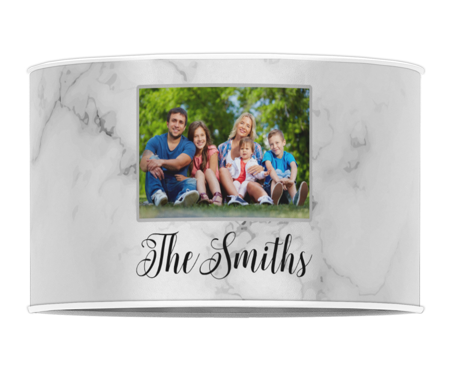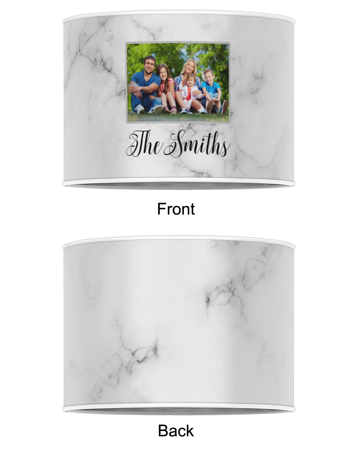 Our personalized drum lamp shades are available in 2 different materials: Poly-film or fabric. Poly-film lamp shades come with the option of white or black border trims to best match your customized design. Fabric lamp shades are finished with a rolled edge for a clean modern look.