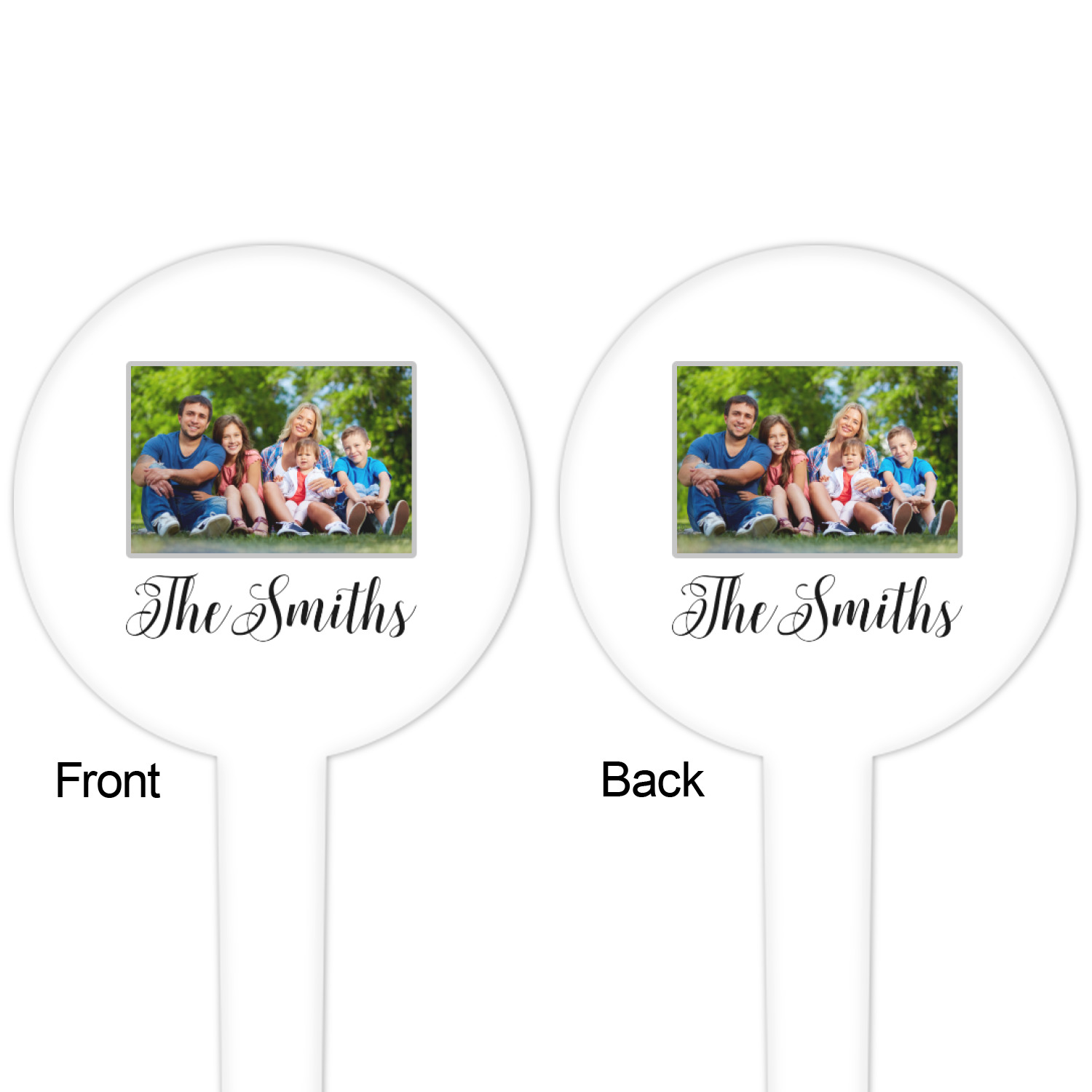 The round disc on these food & drink picks can be customized and personalized to your specifications. Your image will be printed in full color on one side or both sides. You can use the same image on both sides or use two different images.