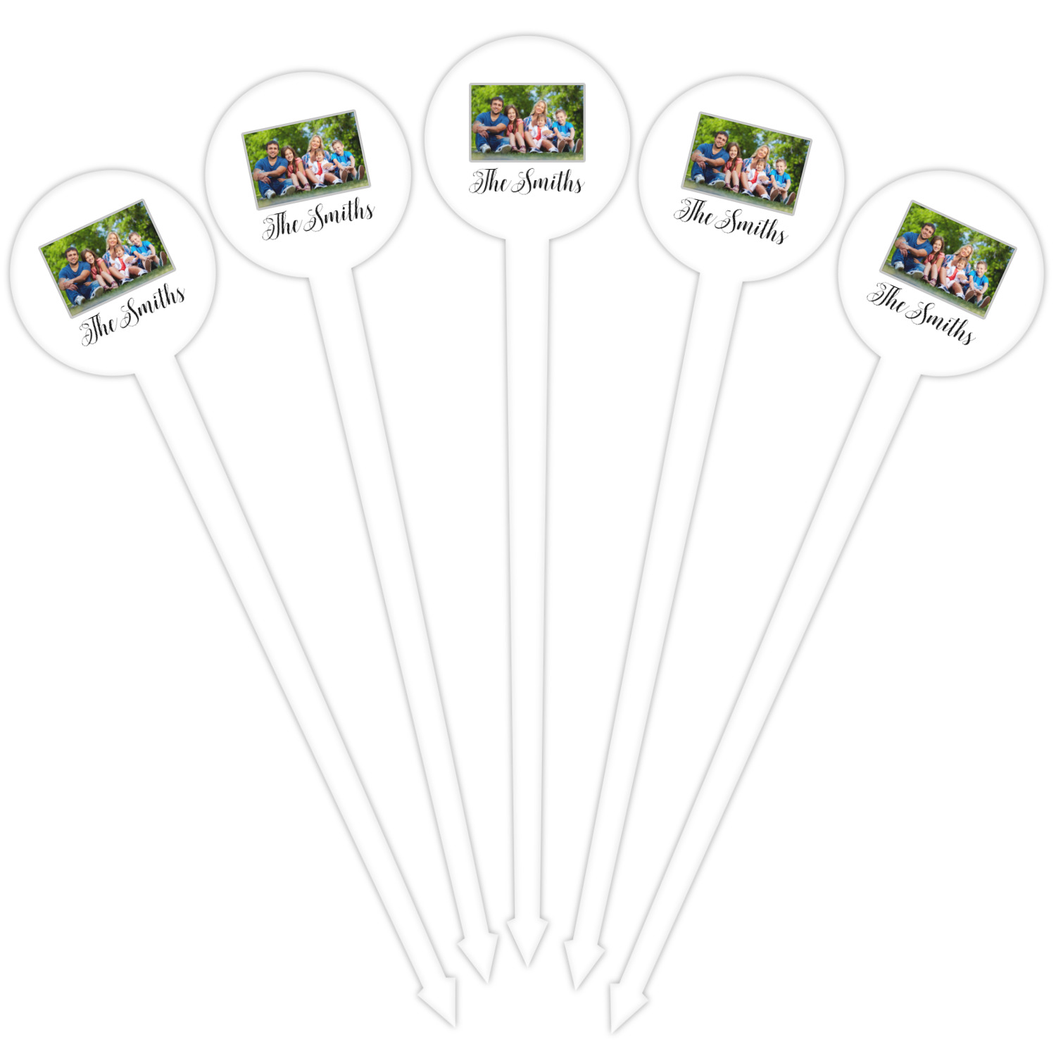 The round disc on these food & drink picks can be customized and personalized to your specifications. Your image will be printed in full color on one side or both sides. You can use the same image on both sides or use two different images.