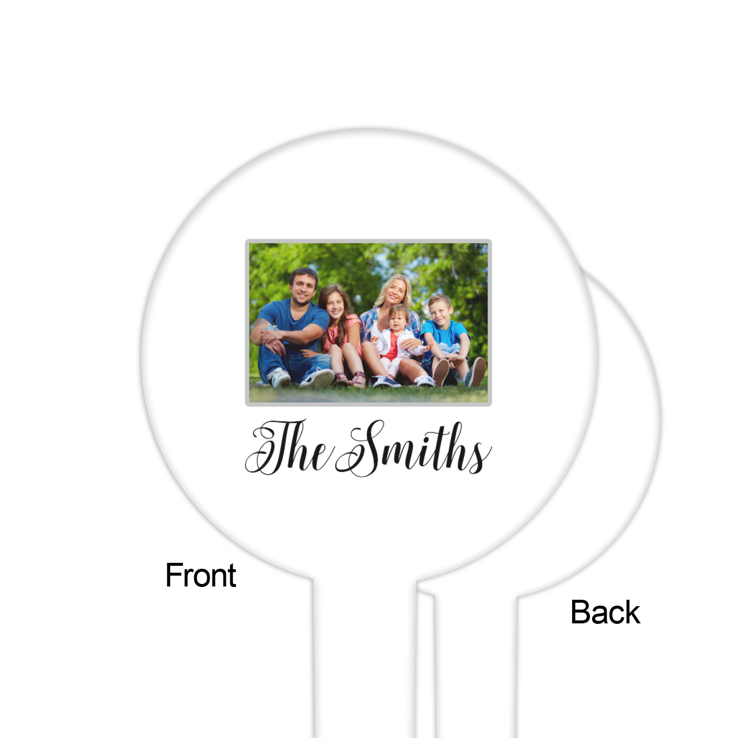 The round disc on these food & drink picks can be customized and personalized to your specifications. Your image will be printed in full color on one side or both sides. You can use the same image on both sides or use two different images.