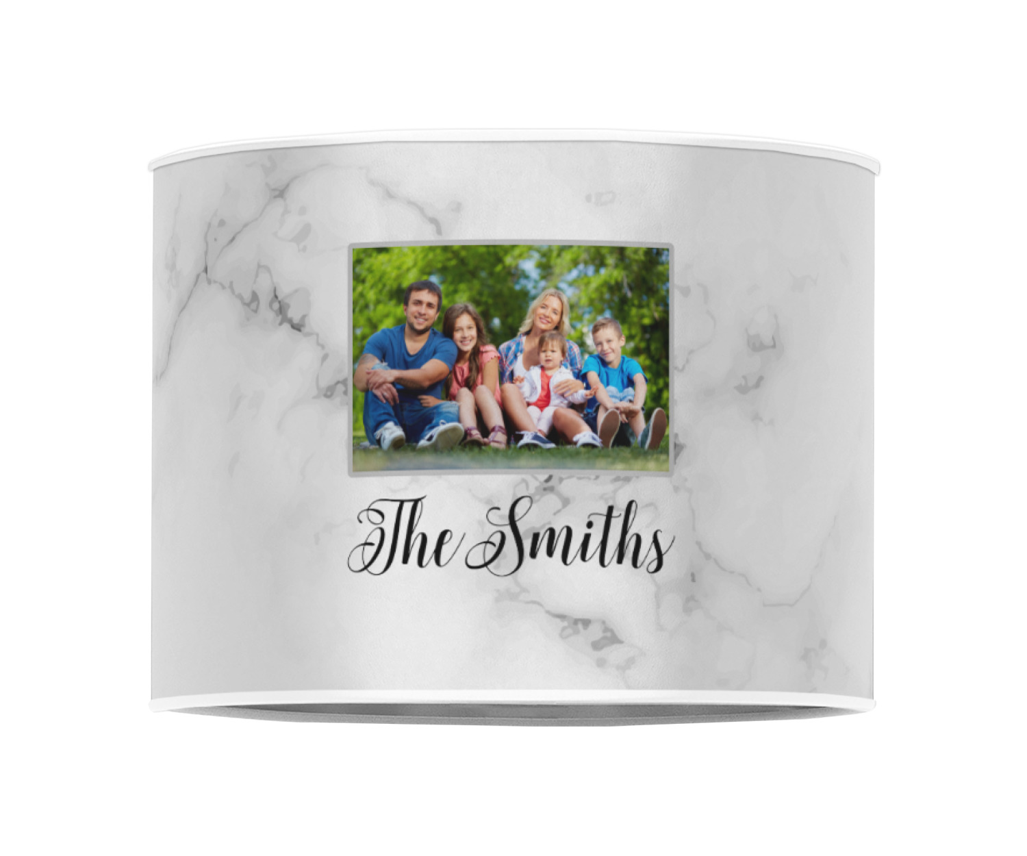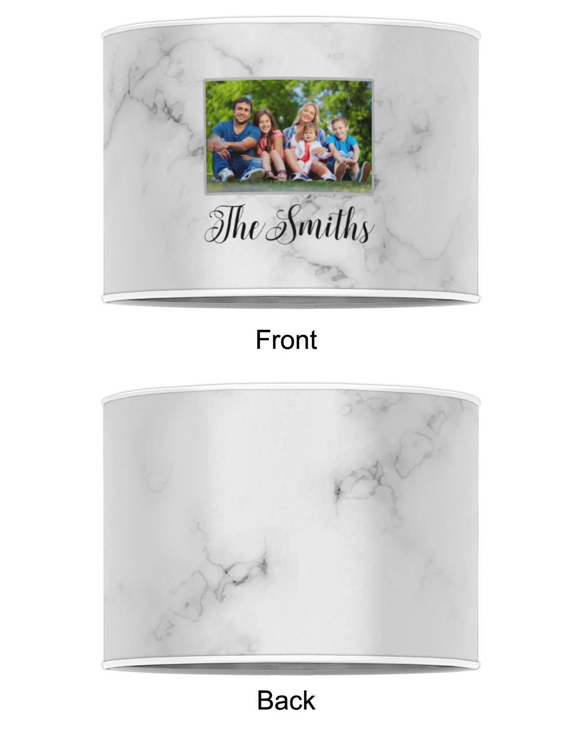 Our personalized drum lamp shades are available in 2 different materials: Poly-film or fabric. Poly-film lamp shades come with the option of white or black border trims to best match your customized design. Fabric lamp shades are finished with a rolled edge for a clean modern look.