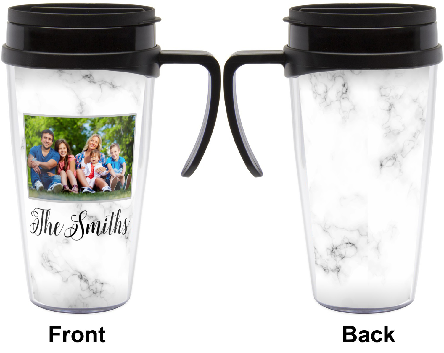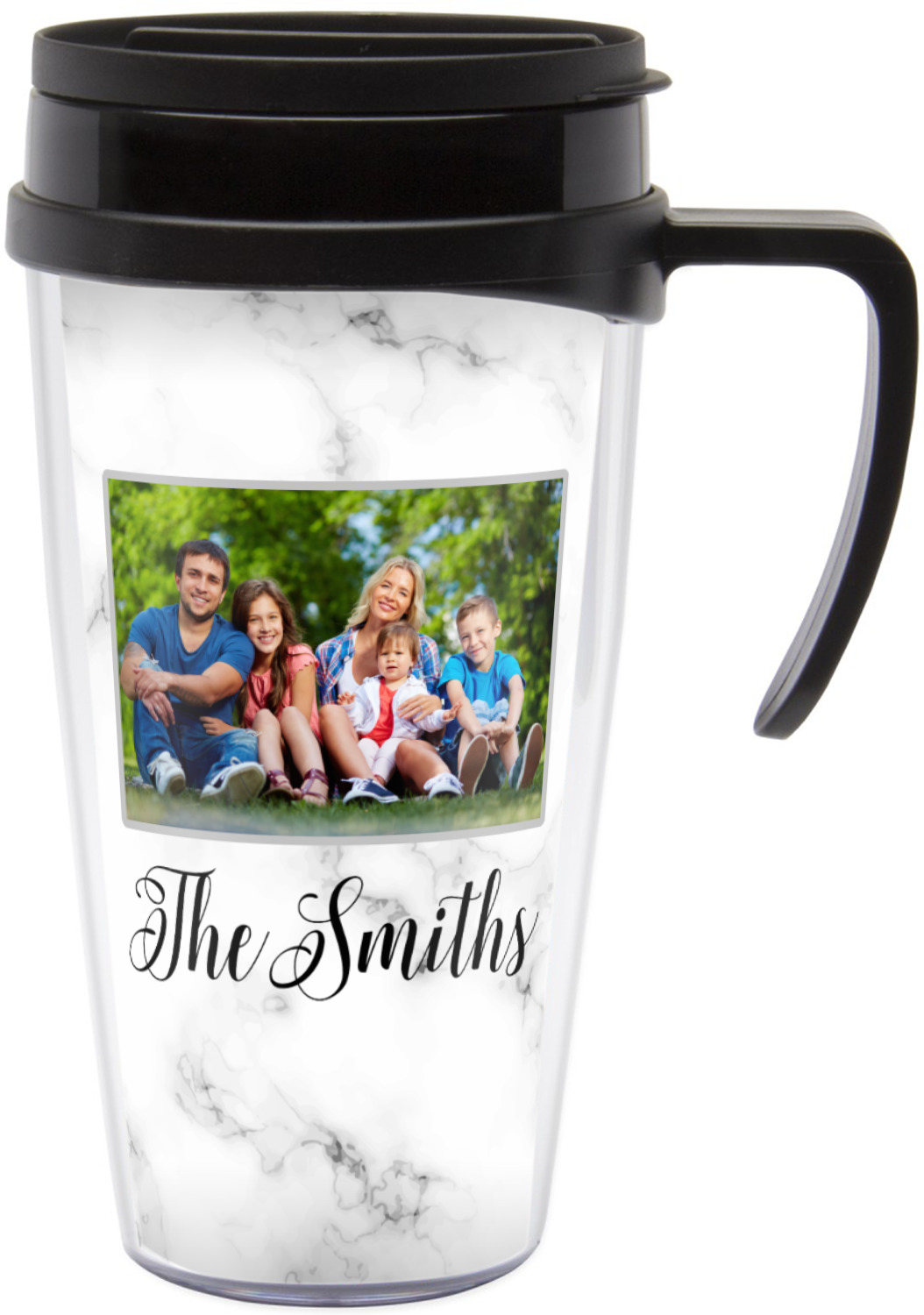 Keep your drink secure while on your daily commute with one of our personalized travel mugs! These travel mugs will add a splash of color and creativity to your kitchen counter-top, car cup holder, office desk, or wherever you choose to place them! With these custom mugs, you'll never have to settle for a boring, run-of-the-mill travel mug.