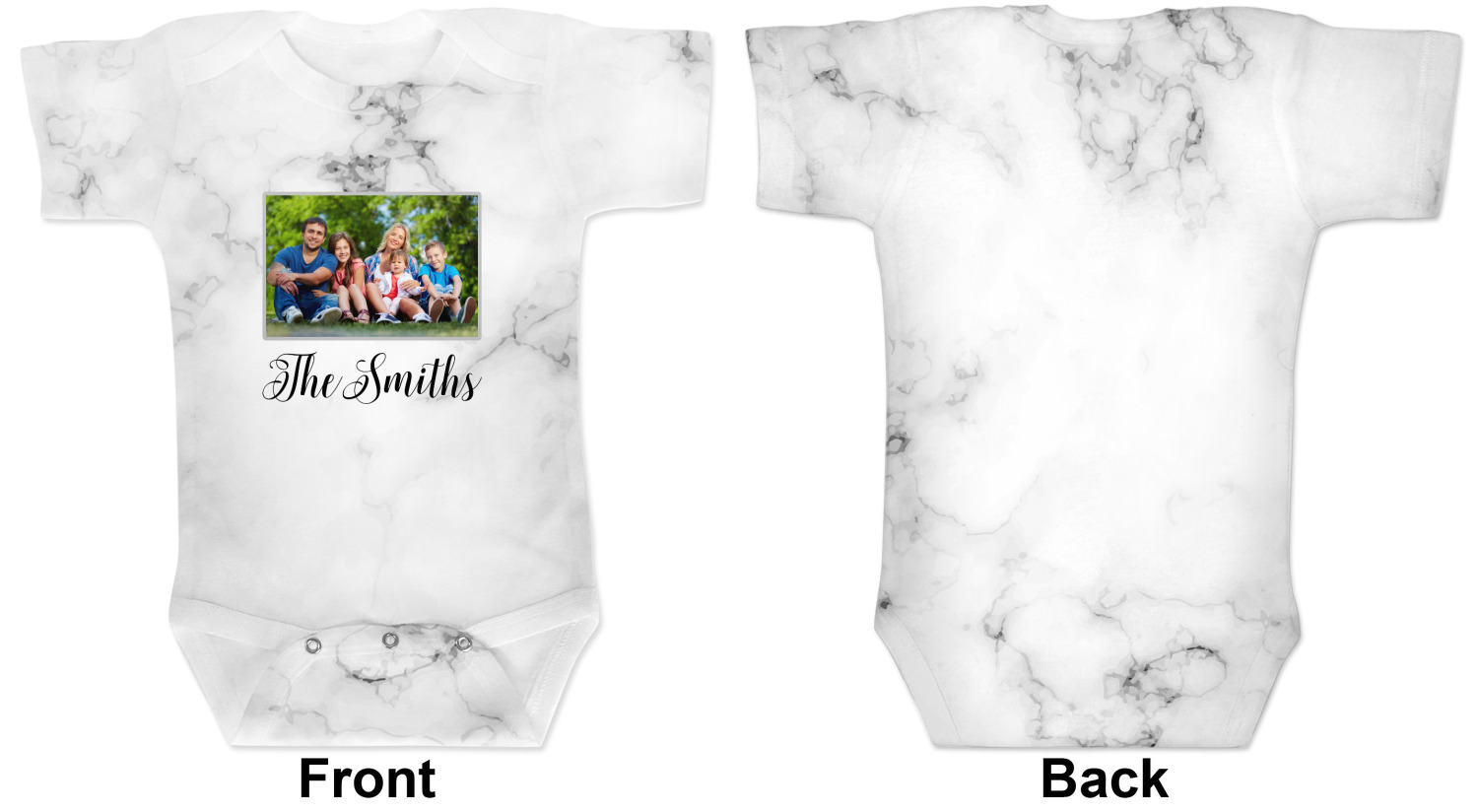 These cute baby bodysuits are made of stretchy, soft-to-the-touch polyester, making them very comfortable for your baby. These baby bodysuits also have snaps on the bottom to give easy access during changing times. Your personalization covers the entirety of this custom baby bodysuit, but the interior is white in color. As these are unisex baby bodysuits, they will work perfectly as baby girl bodysuits and baby boy bodysuits!
