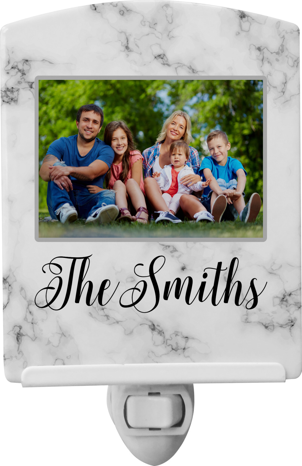 This baby night light is made of durable, ceramic plate that displays your customized design beneath a glossy finish. When this light is turned on, your personalization glows in the dark and offers a bit of light to any room or hallway. The plate also rotates easily. This plug-in night light has a white base with a convenient on and off switch. Additionally, the rotating plug allows you to plug them into US sockets horizontally or vertically. If your child outgrows the design years into the future, you can easily unscrew the plate and use it as a plain nightlight. With your purchase of this outlet night light, we include a 7-watt bulb.