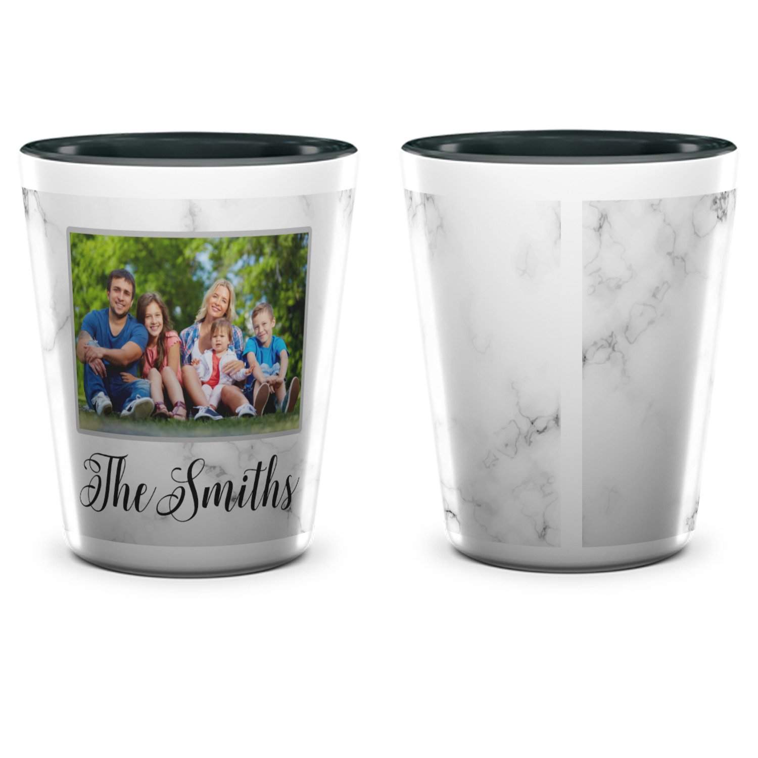 Made from ceramic these shot glasses are printed in full color with the design of your choice. These are a standard 1.5oz size and stand 2.25" tall. Available in a full white ceramic or a two-tone with a black color inside the shot glass. Buy a single or a set of 4, all of which can be designed separately to get you just what you want and need.