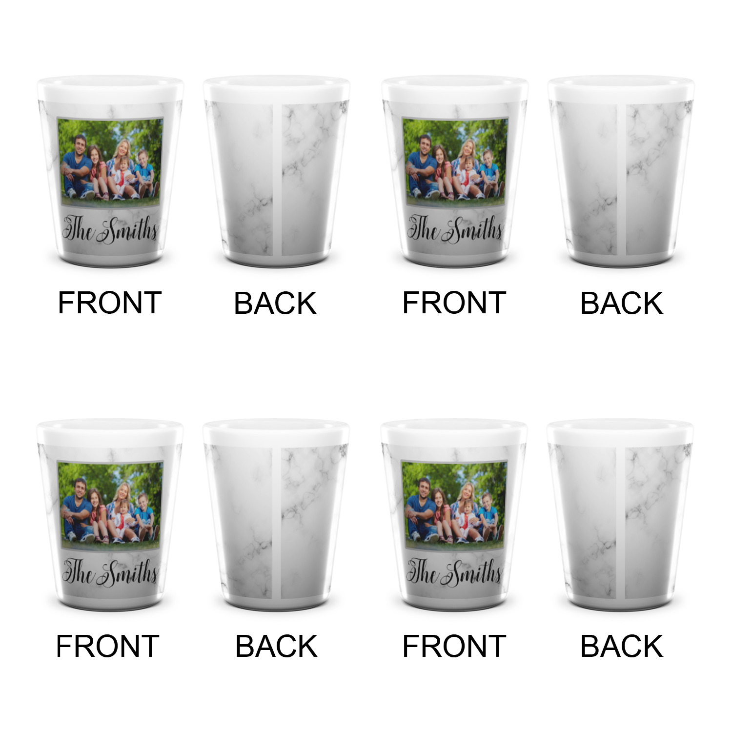 Made from ceramic these shot glasses are printed in full color with the design of your choice. These are a standard 1.5oz size and stand 2.25" tall. Available in a full white ceramic or a two-tone with a black color inside the shot glass. Buy a single or a set of 4, all of which can be designed separately to get you just what you want and need.