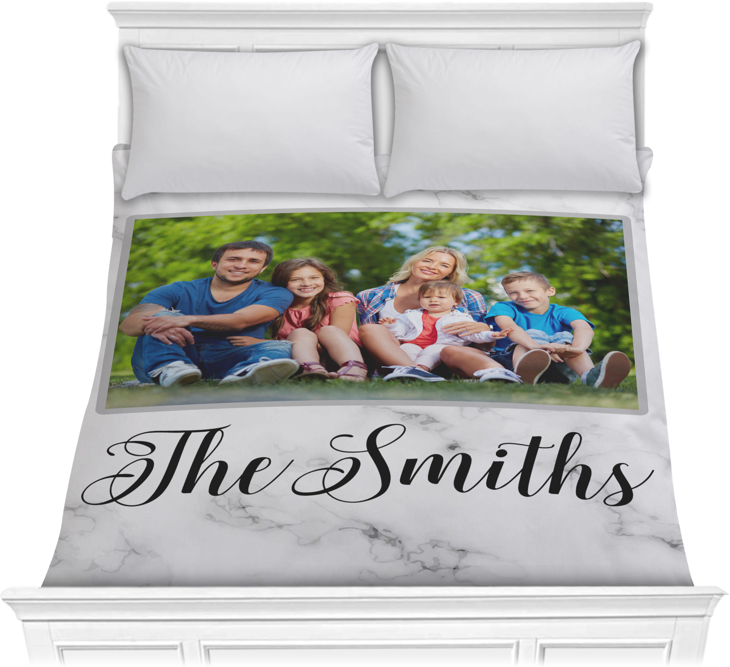 We have hundreds of different design templates for you to choose from Each design can be customized to your exact specifications. Not only can you customize the comforter, but you can also customize each pillow sham e.g. for a queen comforter set you have have Mr & Mrs pillow shams with the last name on comforter.