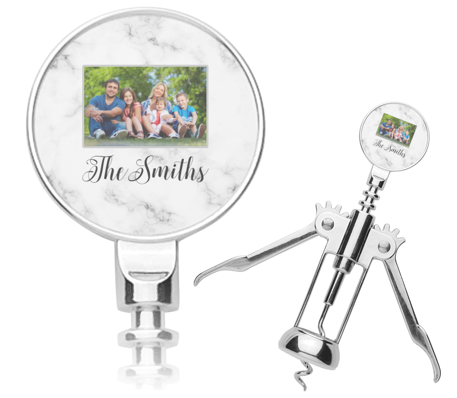 Built from a robust stainless steel, this wine bottle opener features winged grippers that let you remove the cork with little to no resistance. Your personalized corkscrew also includes a circular turn-handle at its top. At 7 inches long, you can easily store this wine corkscrew in a drawer or a shelf. Your customization is printed on both sides of the turn-handle, and can be customized individually.