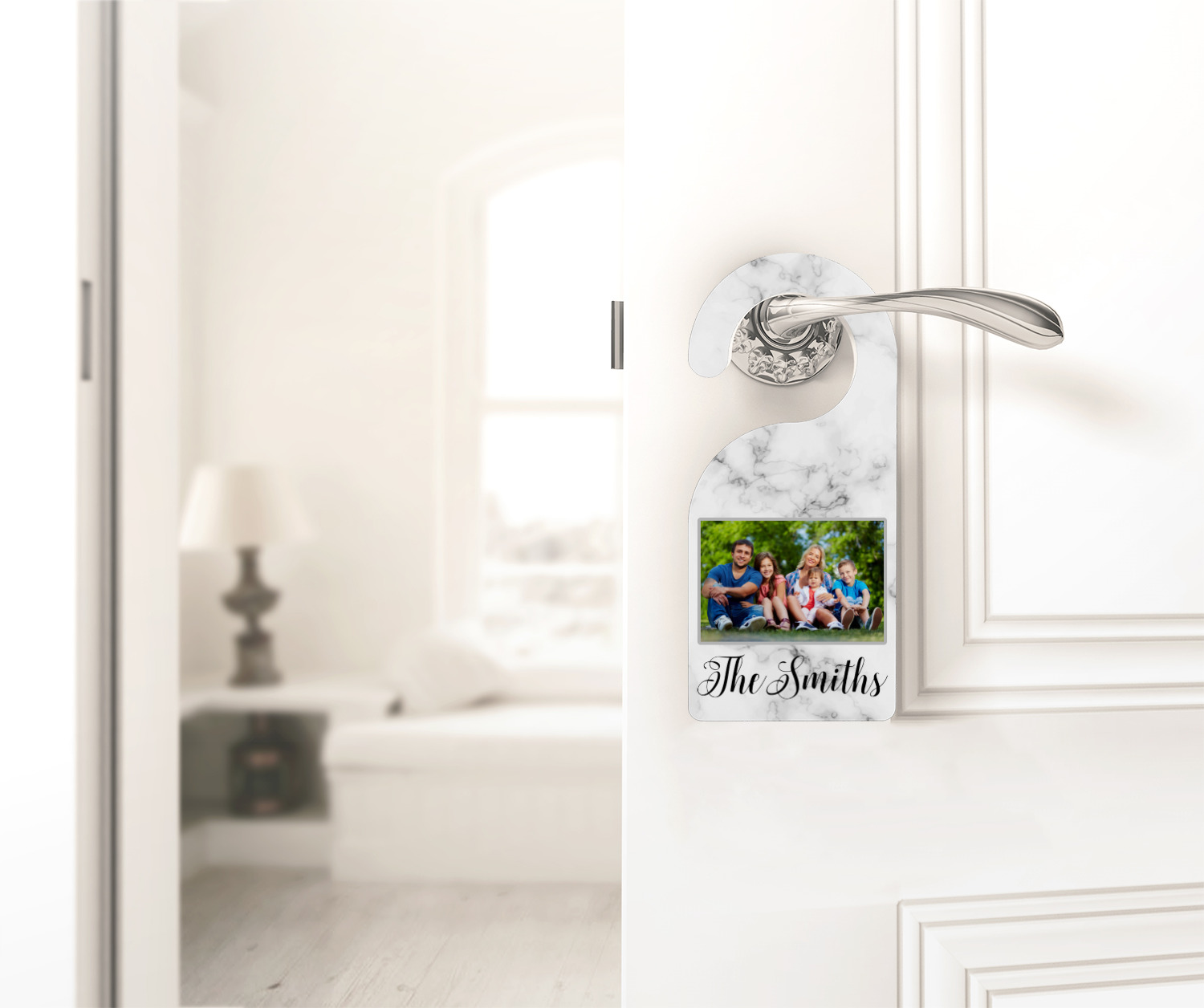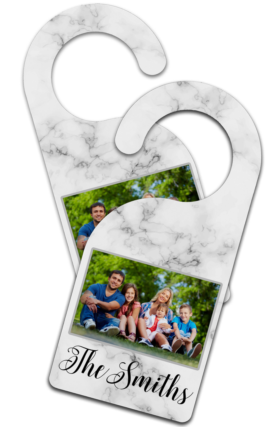 These door hanger signs are built to be durable enough for day-to-day use. Your customization is printed across the entire surface, beneath a glossy shine that makes your design really stand out. You can choose to have the same design on both faces of these door hang tags, or you can make the designs different, depending on your needs. The curved hook at the top of this personalized door hangers allows the tag to remain attached to the handle even when you close or open the door.