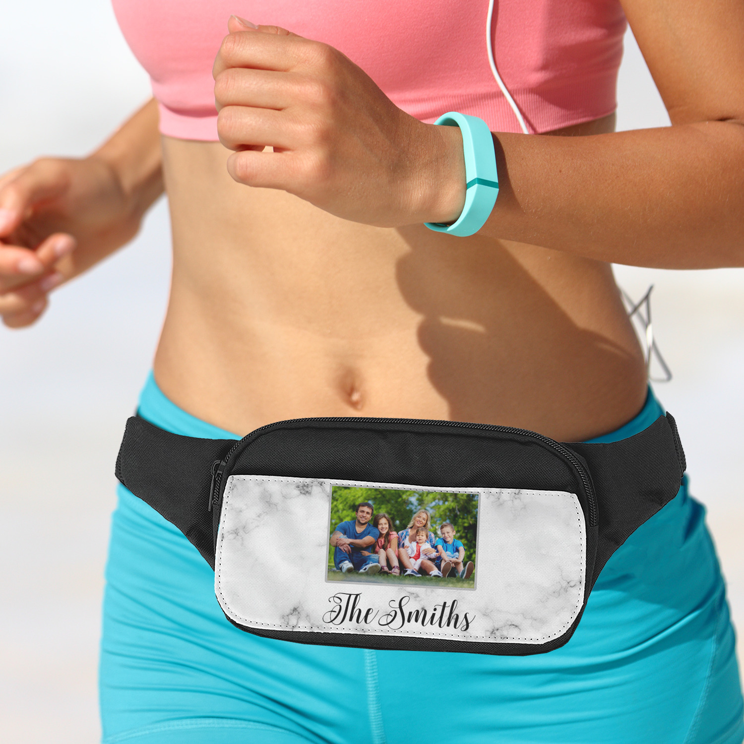 This is a unisex fanny pack - suitable for both men & women. The front flap is printed in full color with your design. You can add a photo, logo or any image that you would like. We offer a number of design templates that can be customized by you to your liking.