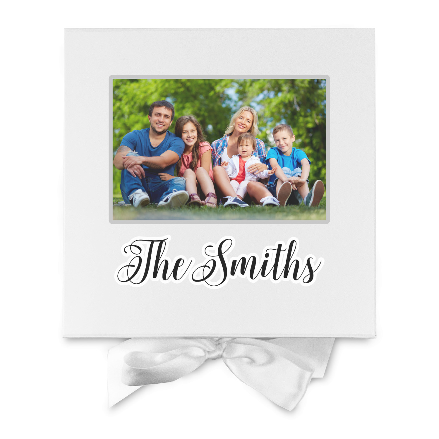 Design your own using our design library and we will print your artwork onto the lid of the gift box. When the box is closed the ribbons can be tied to secure the lid and add to the elegant look of these gift boxes.