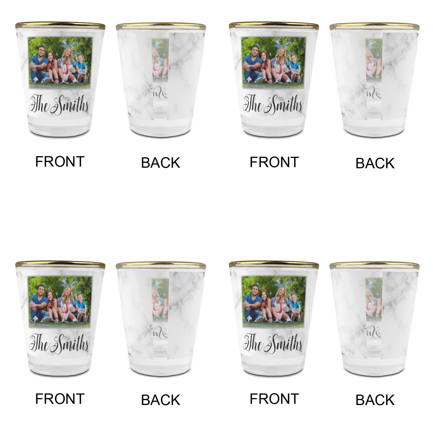 Made with frosted glass, these shot glasses are printed in full color with the design of your choice. They are a standard 1.5oz shot glass and are 2.4" tall. The print is wrapped around the shot glass in a full wrap and boldly displays your customization.