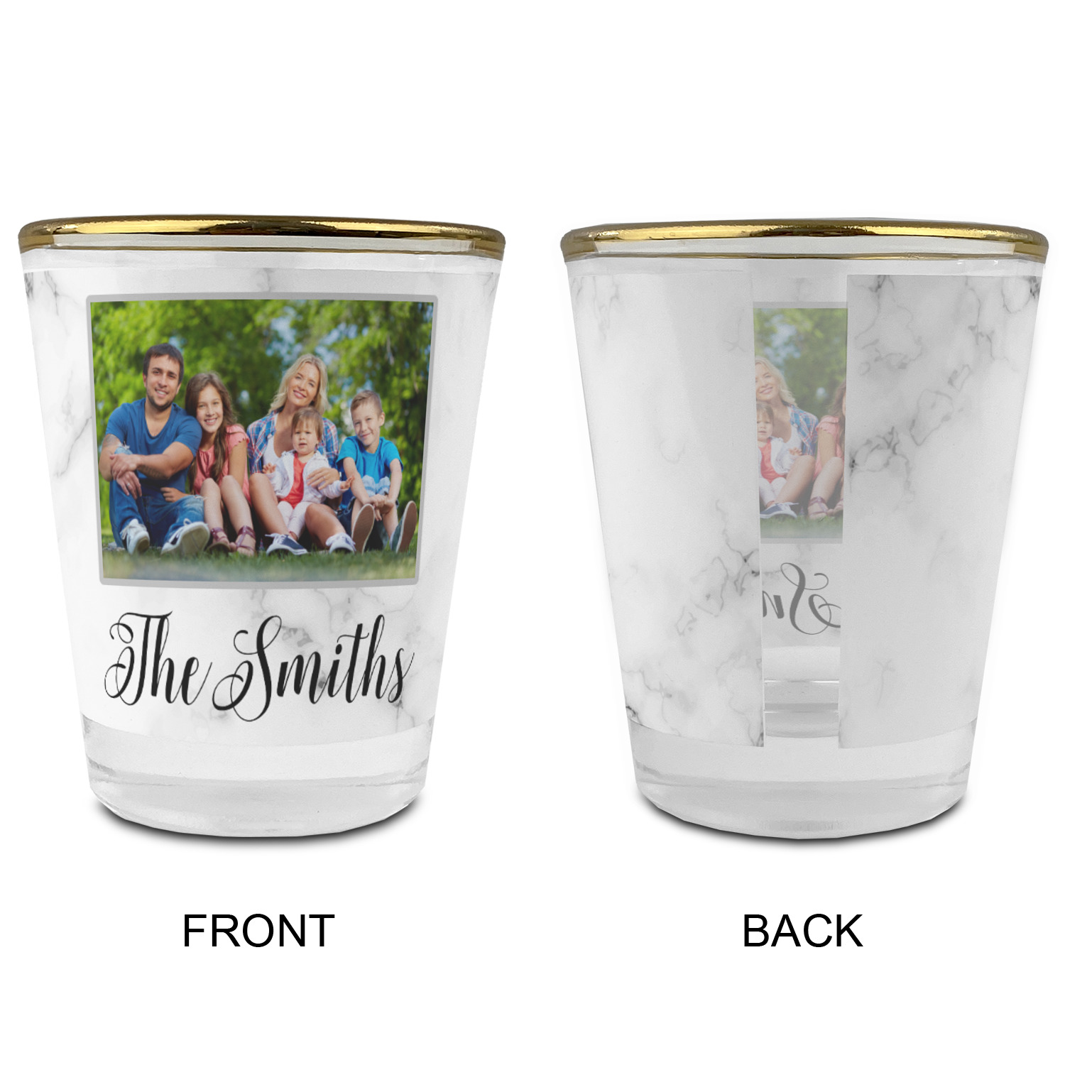 Made with frosted glass, these shot glasses are printed in full color with the design of your choice. They are a standard 1.5oz shot glass and are 2.4" tall. The print is wrapped around the shot glass in a full wrap and boldly displays your customization.