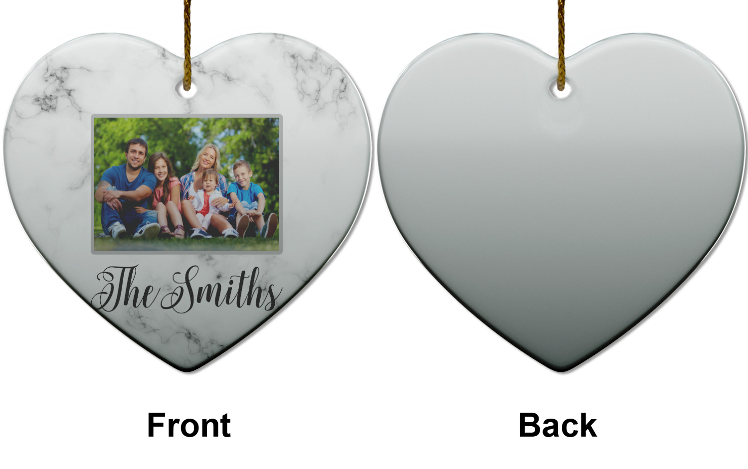 Have a happy holiday and share the joy of Christmas with your loved ones by hanging up personalized ceramic ornaments! Ornaments add a touch of who you are and the things you love onto the Christmas tree! Create custom ornaments for the kids and have them hang up their own star with their name, or pay remembrance this holiday to missed loved ones with our ceramic heart ornament. Browse many of our unique designs and customize them the way you'd like! From monograms, logos, and patterns, we have it all! You can even upload a photo of your family for us to print onto the ornament! The possibilities are endless!