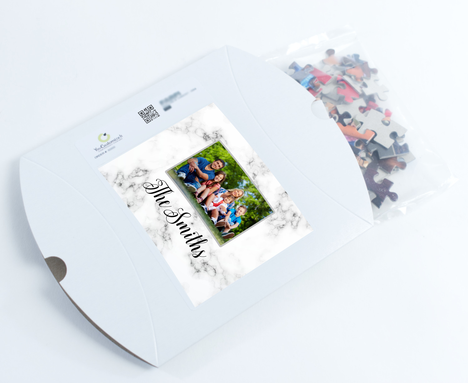 With our custom jigsaw puzzle, you get to decide what you want on your puzzle. You can upload a scenic photo that you took, or a photo or a photo of your children or your family. In today's world photos are so easy - so find your favorite photograph and upload it.