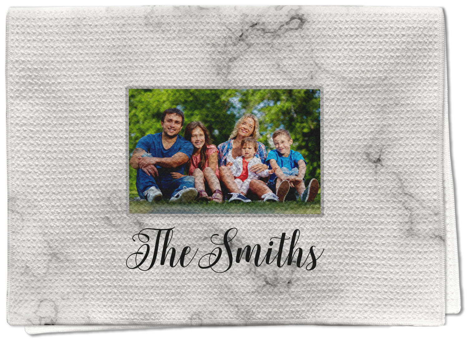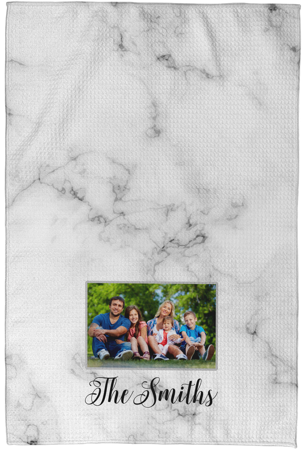 Each waffle weave kitchen towel is approximately 16 x 24 inches with your design printed on one side and the back is white.